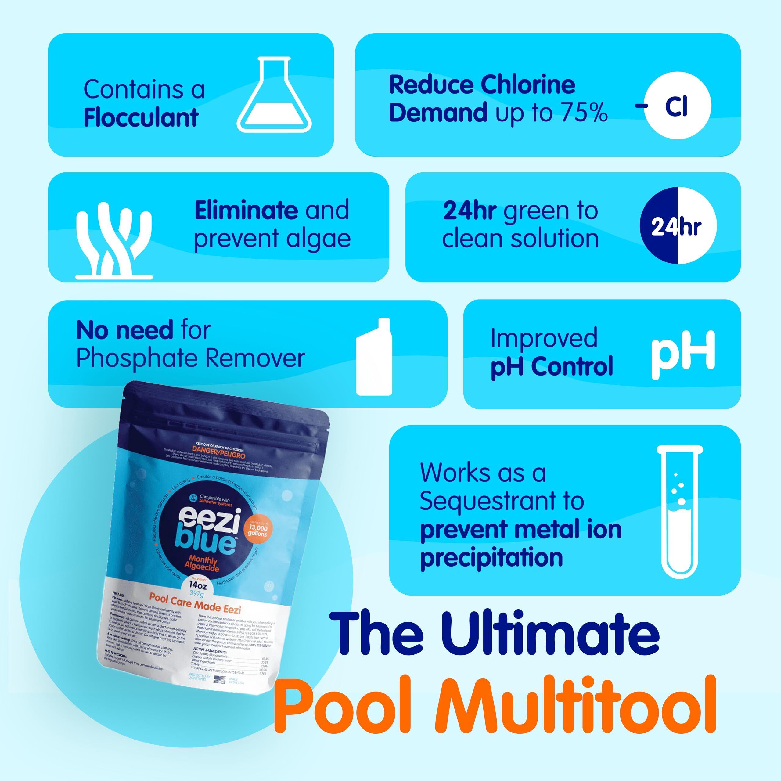 単なるプール用藻剤以上のもの:Eezi Blueはプールの透明度を高め、ろ過を改善し、プールメンテナンスルーチンの不可欠な部分にします。 地下プールと地上プールの両方に最適です。
