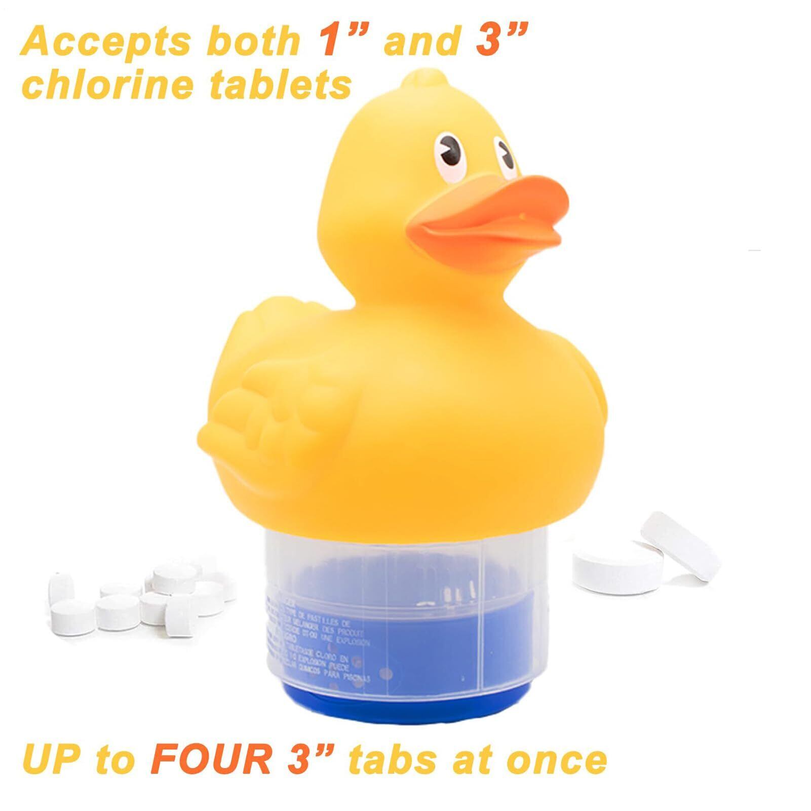 プール用の塩素ディスペンサー、プール塩素フローター,調整可能なフローティングディスペンサー | 大容量のタブレットホルダー、小浴槽と大きな浴槽用のアヒル形状コンテナ