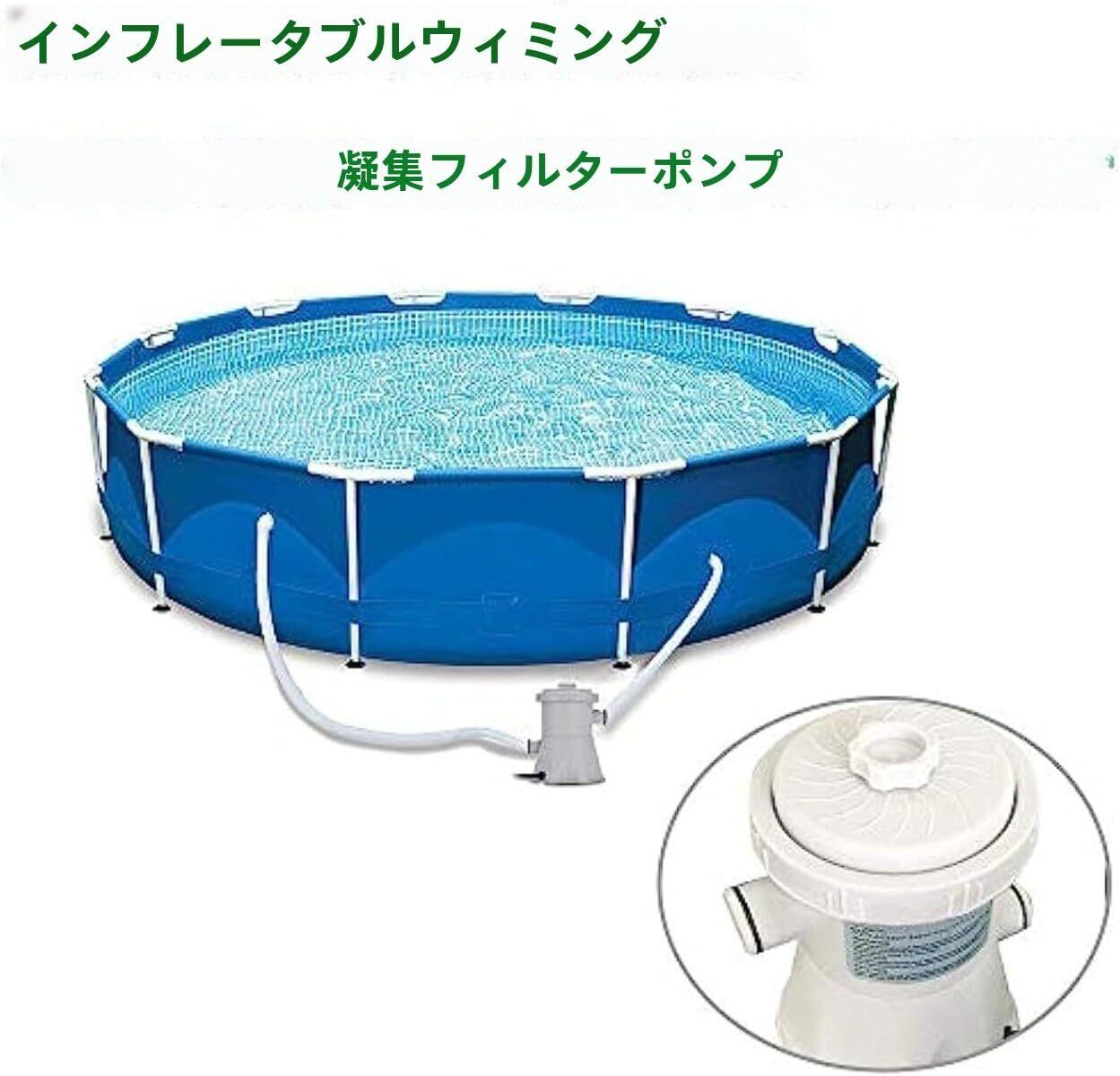 【MoFein】 家庭用の電気プールフィルターポンプで、容量は 300 ガロンです。110V - 220V に対応しており、プール水フィルターとして機能します。循環再利用が可能で、クリーナーとしても使えます。魚の池やインフレータブルプールに適用できます。