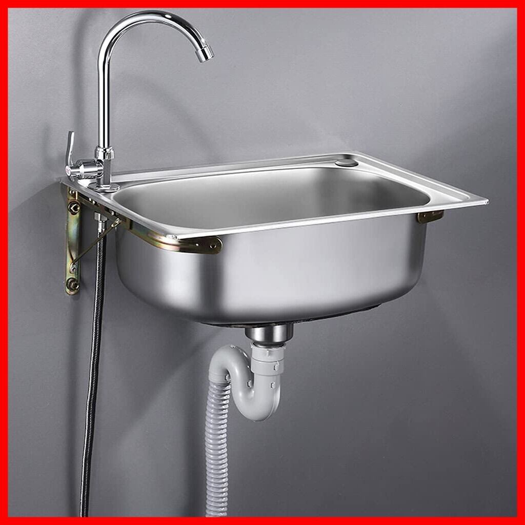 SHIJIANX 市販のステンレス製壁掛け式ハンドシンク-ステンレス製シンク-小さなシングルタンク-シンプルなキッチンシンク、シンク、洗面台、ブラケット付き壁掛け式