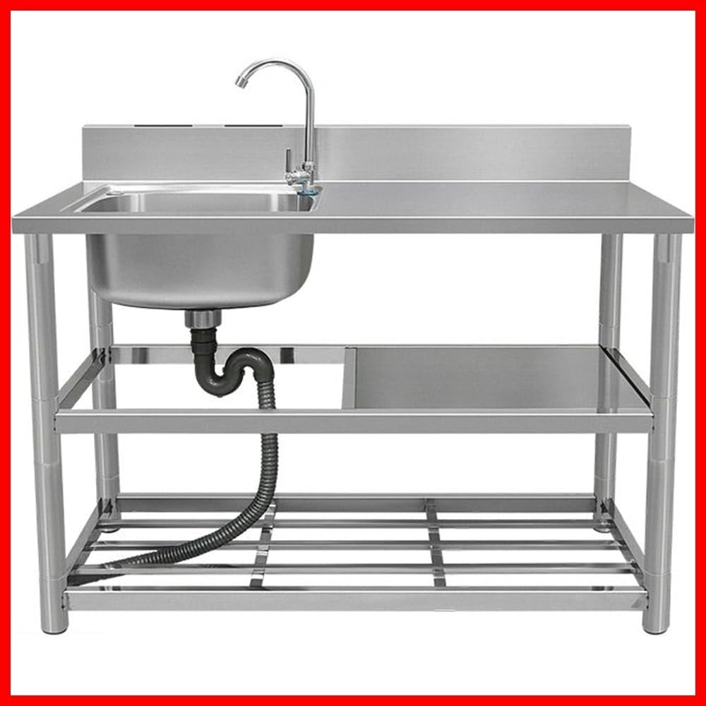 【在庫セール】流し台 ステンレス製 業務用 作業台 キッチンシンク 自立型シンク 混合水栓、排水管付き 仕切り板に包丁差し穴付き設計 強力な耐荷重 防臭排水システム 屋外、屋内、キッチン、レストラン、工場、農園、食堂用(左,100*50*80cm) | Cherry Blossoms