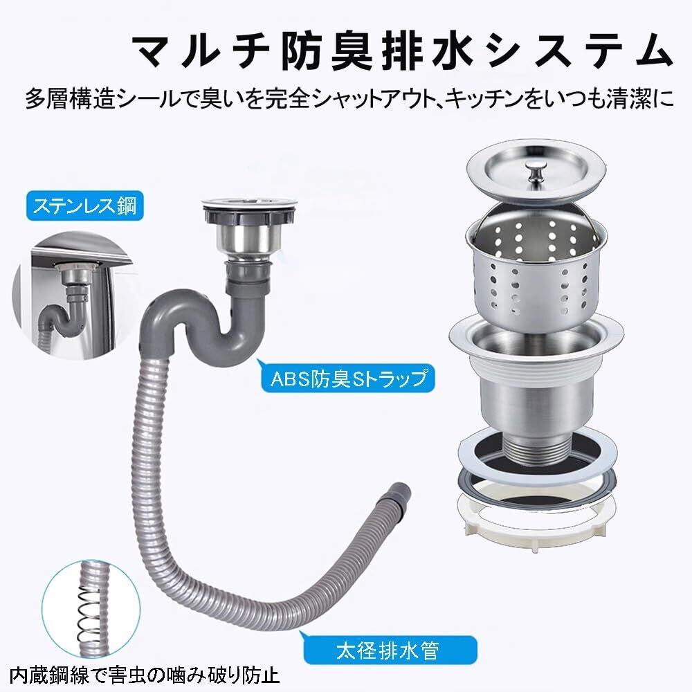【ステンレス製シンク】このキッチンシンクは高品質のステンレス製です。頑丈な構造は美しい外観と優れた耐腐食性を備え、輝きを放ちます。非常に頑丈でお手入れも簡単なので、長くお使いいただけます。