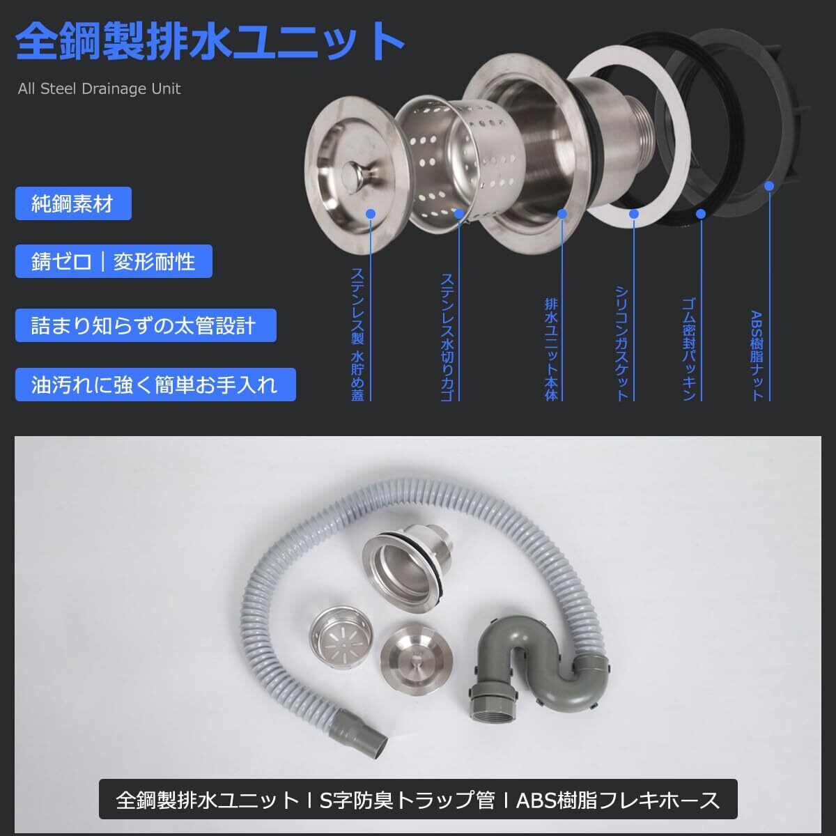SUKIZUKI 流し台 ガーデンシンク ステンレス製 シンクシステムキッチン 排水ホース 収納付き 蛇口付き 錆びにくい 洗い物 シンプル 簡易式 屋外 工場 農園 台所 キッチン用 75*40*75cm