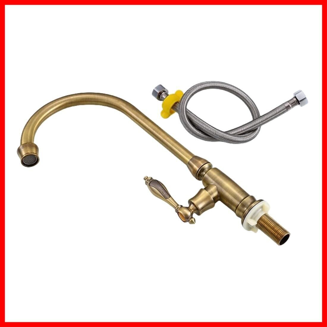 Brfveob 洗面用 アンティーク 単水栓 手洗いボウル 360°回転 ロング水栓 グースネック スワン 蛇口 レトロ シングルレバー 洗面台 ゴールド (60cmチューブ付き)
