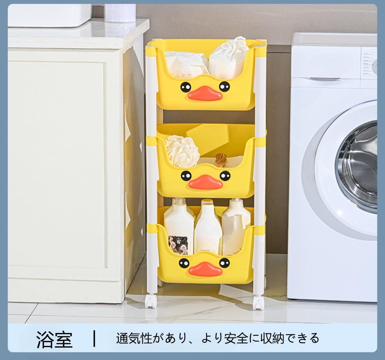 【特価商品】Rdaqqer子供用収納ボックス 大容量 絵本棚 おもちゃ収納棚 おもちゃ箱 バスケット カゴ トロリー キャスター付き かわいい 大容量 子供部屋 (リトルイエローダック 2層) | Cherry Blossoms