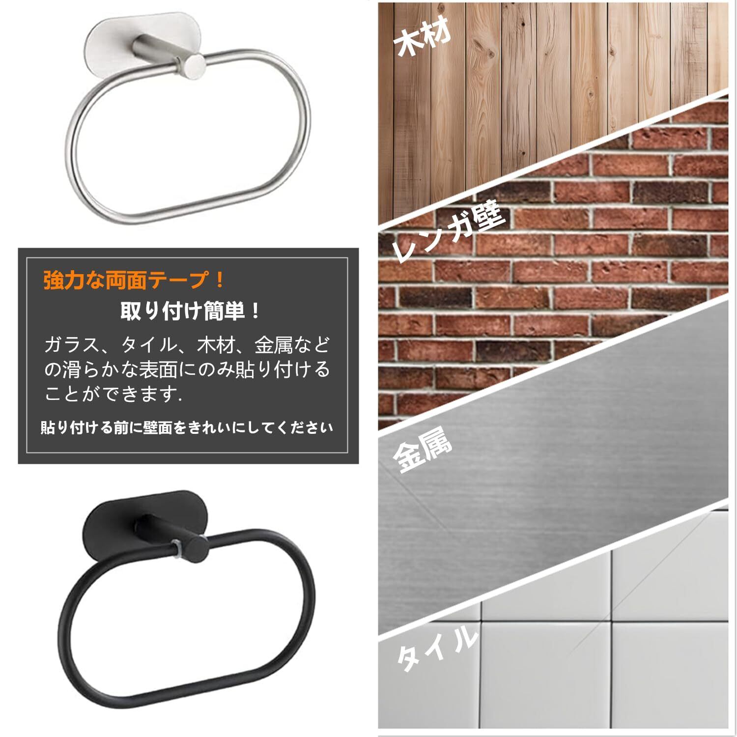 タオルリング タオル掛け ステンレス製 強力両面テープ 粘着性高い 接着剤付け 穴開け不要 取り付け簡単 壁付け キッチン 洗面所 台所 浴室 用 シルバー