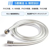 このシャワーホースは柔らかく、耐久性に優れており、360°自由回転可能です。 A級鍛造黄銅で精密加工された接続部は、安全性と耐久性をし、国際標準G1/2のネジサイズで取り付けが簡単です。無臭で汚れが付きにくく、PVC素材と多層防爆構造で安全性が高く、衛生的です。さらに、シンプルで上品なデザインが高級感を演出し、広範なシャワーヘッドに適用できます。