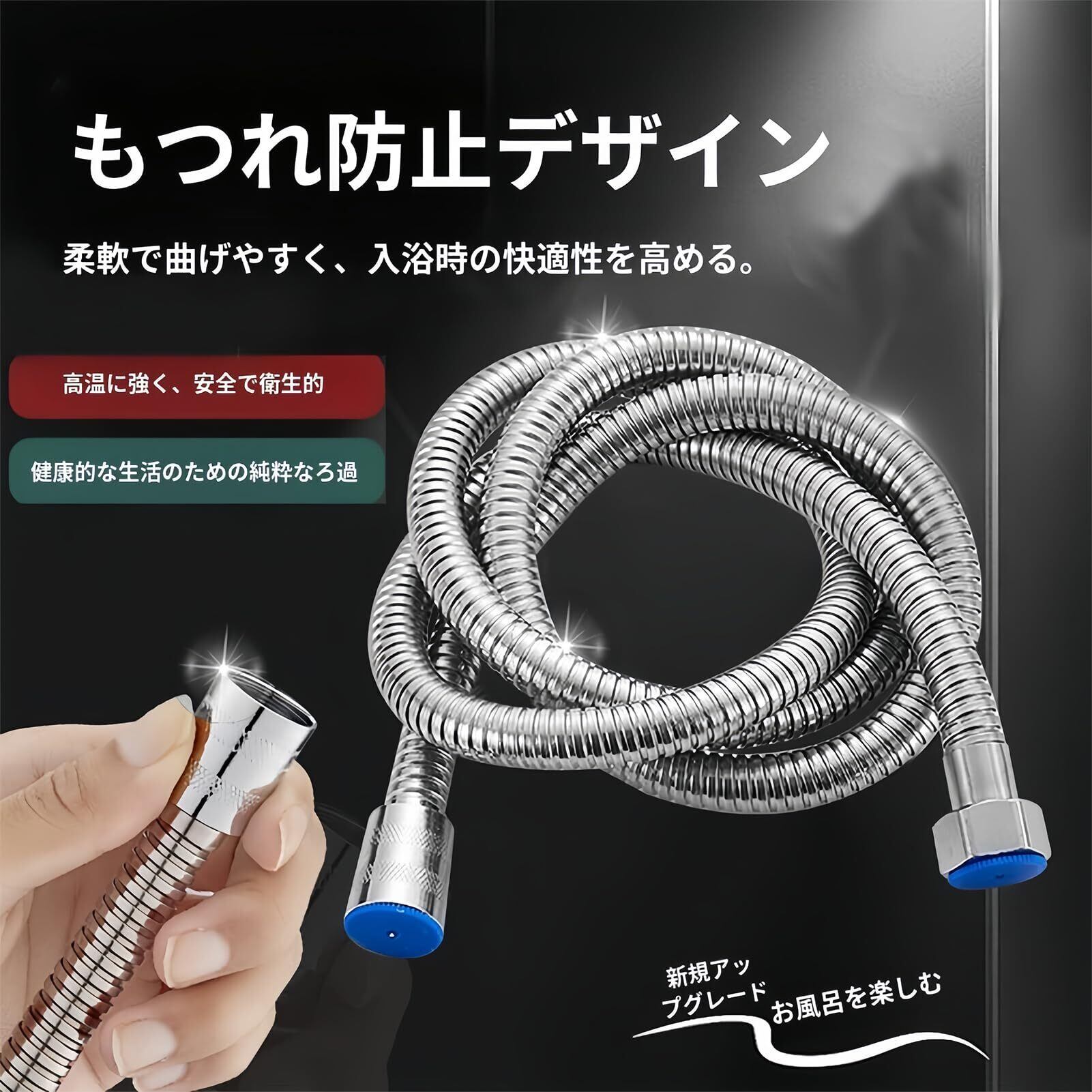 【大流量 耐久性抜群】 太めたホース内径で、普通のシャワーホースより流量もっと大きいです。高い水圧を加えても膨らみ、変形、破損、水漏れが発生しません。ステンレス材質を採用することで、頑丈で長く使用できます。金属製なので無臭、カビないという特長が持っています。洗練なメタル調クロムメッキ仕上げがされているため、バスルームに合わせやすいし、日々のお手入れも簡単です。