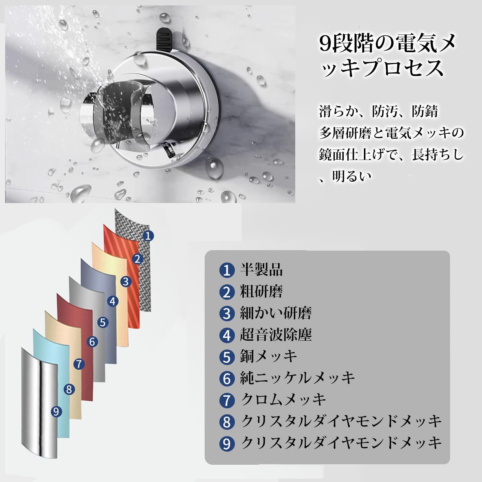 9層電気メッキ・防水性と耐久性: シャワーフックは厚みのあるABS素材で作られており、耐久性があり、防水性と防湿性があります。角度調整 多段階、9層のクロムメッキ技術、酸化しにくい、表面がつやつや、その他の浴室の部品と一体感 。