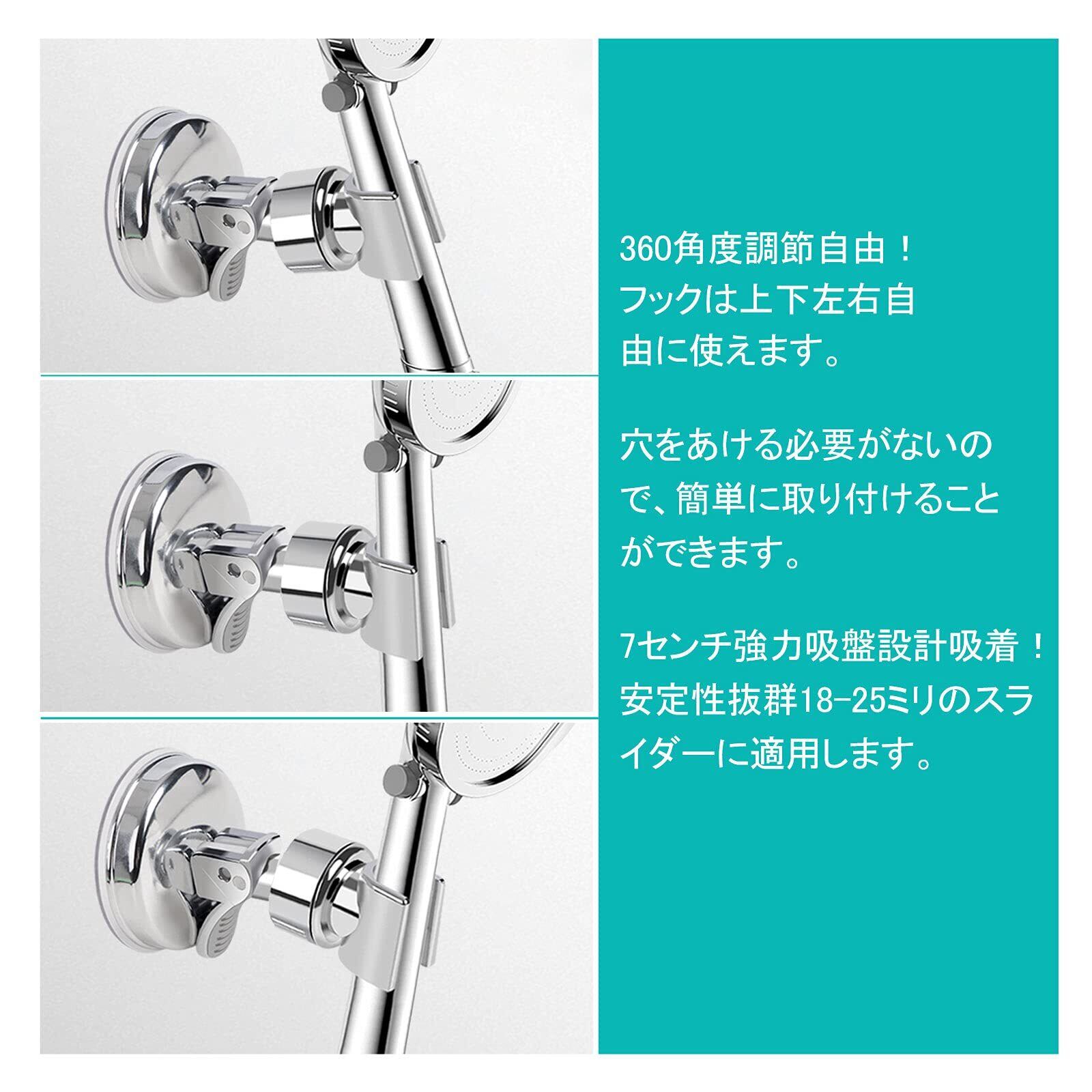 TOPOOMY シャワーフック シャワーホルダー シャワーヘッドホルダー しっかり 吸着 強力吸盤 お風呂に取付 がっちり固定 角度調整可能 汎用 穴あけ&ネジ止め不要 取り付け簡単 18-25mmスライドバーに対応 (18-25CM(A))