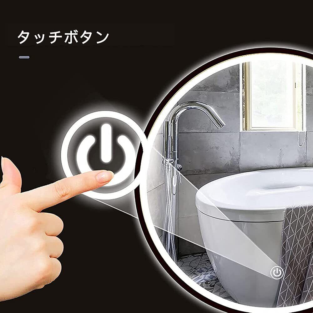 LED浴室ミラー 丸型 浴室鏡 防曇 防水 バスルームミラー 壁掛け鏡 化粧鏡 照明付き 女優ミラー 洗面ミラー ledライト付き 洗面所 洗面台 おしゃれ ウォールミラー,三色 色温度3000-6500K調節可能,タッチスイッチ (Color : Anti-fog+time, Size : 50cm(20in))