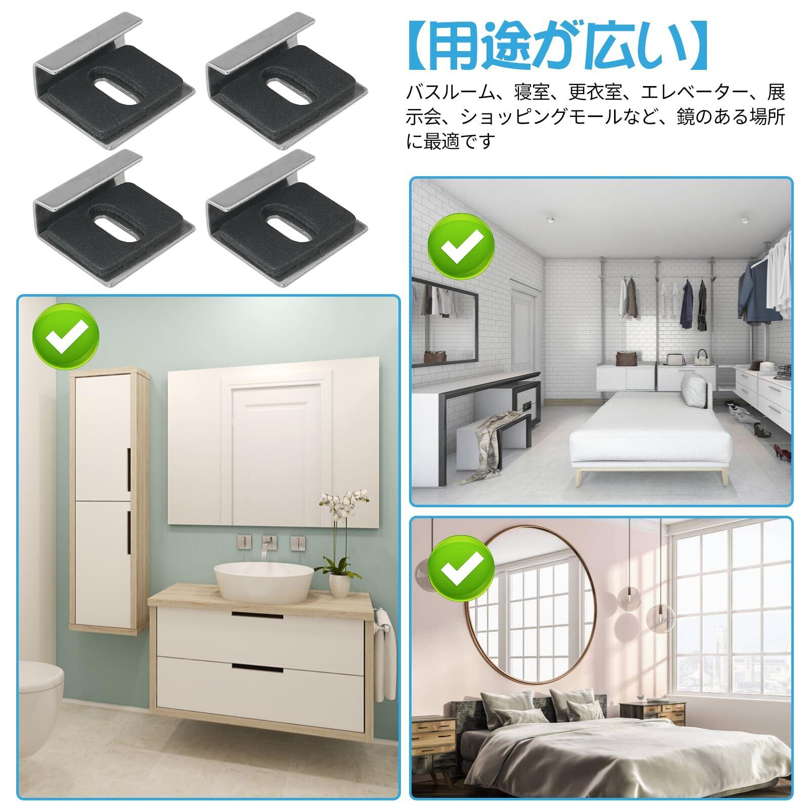 RICISUNG 鏡 取り付け用金具 4個セット ステンレス製 6-7mm厚鏡用 交換用鏡対応 鏡取り付けフック 鏡を壁に止める金具 鏡止め金具 取り付け簡単 化粧鏡用止め金具