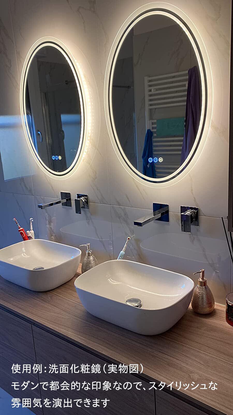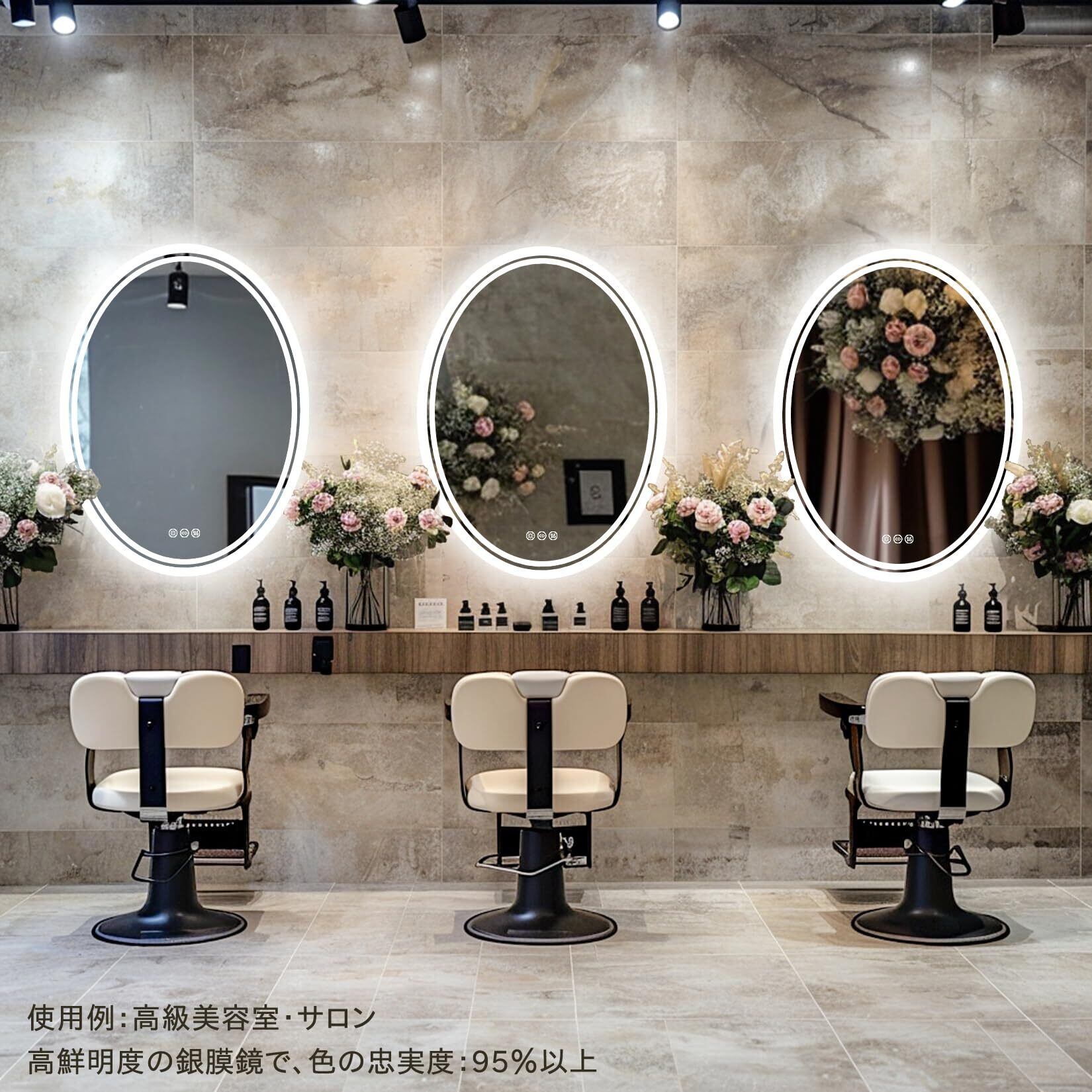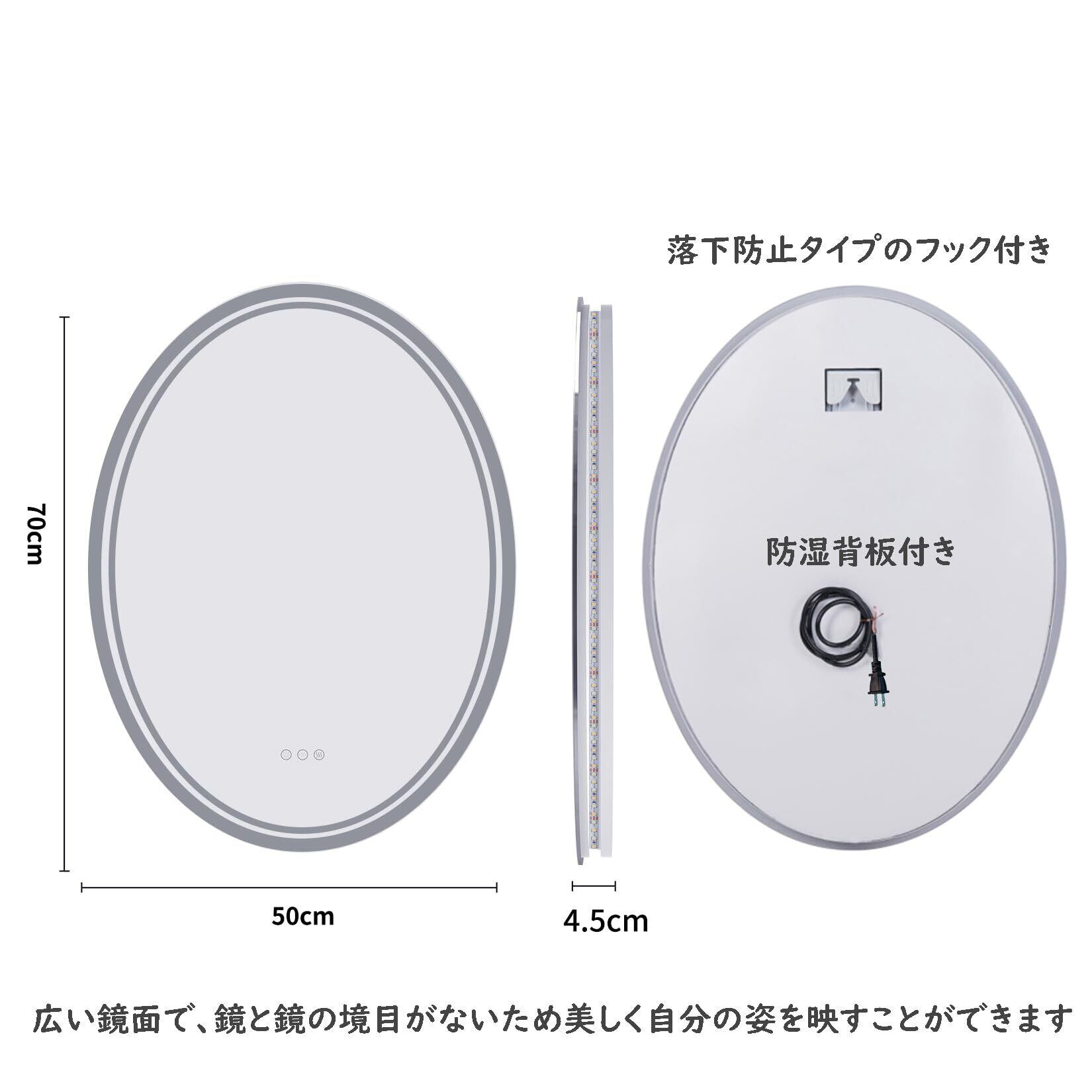 Susire 洗面鏡 楕円 壁掛け 70cm×50cm ledライト付き 浴室鏡 おしゃれ 曇り止め/調光/メモリー機能 洗面所 綺麗に見える鏡 ドレッサー 美容室 女優ミラー 明るい 可愛い 防水