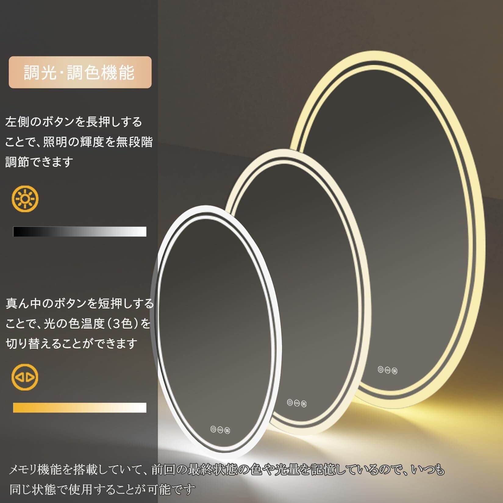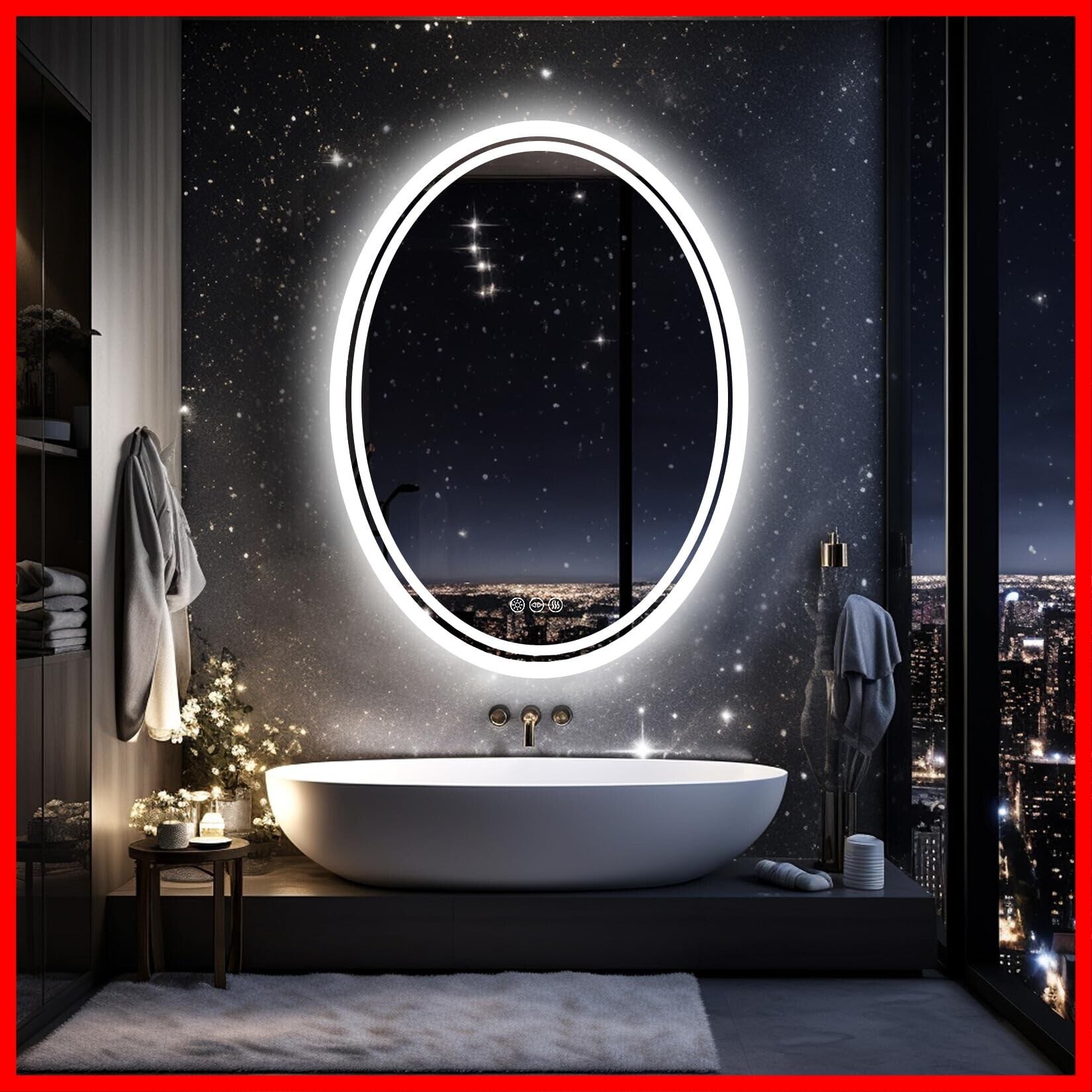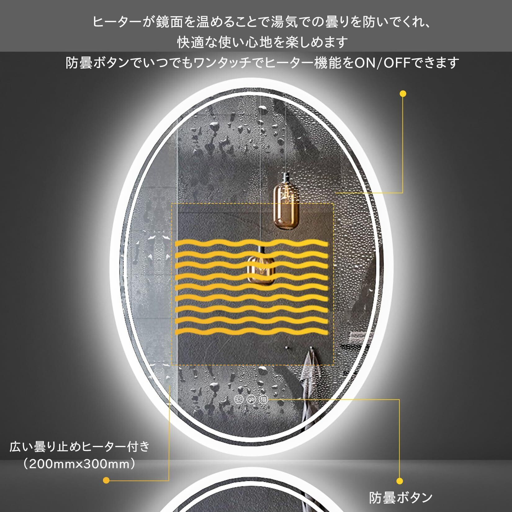 Susire 洗面鏡 楕円 壁掛け 70cm×50cm ledライト付き 浴室鏡 おしゃれ 曇り止め/調光/メモリー機能 洗面所 綺麗に見える鏡 ドレッサー 美容室 女優ミラー 明るい 可愛い 防水
