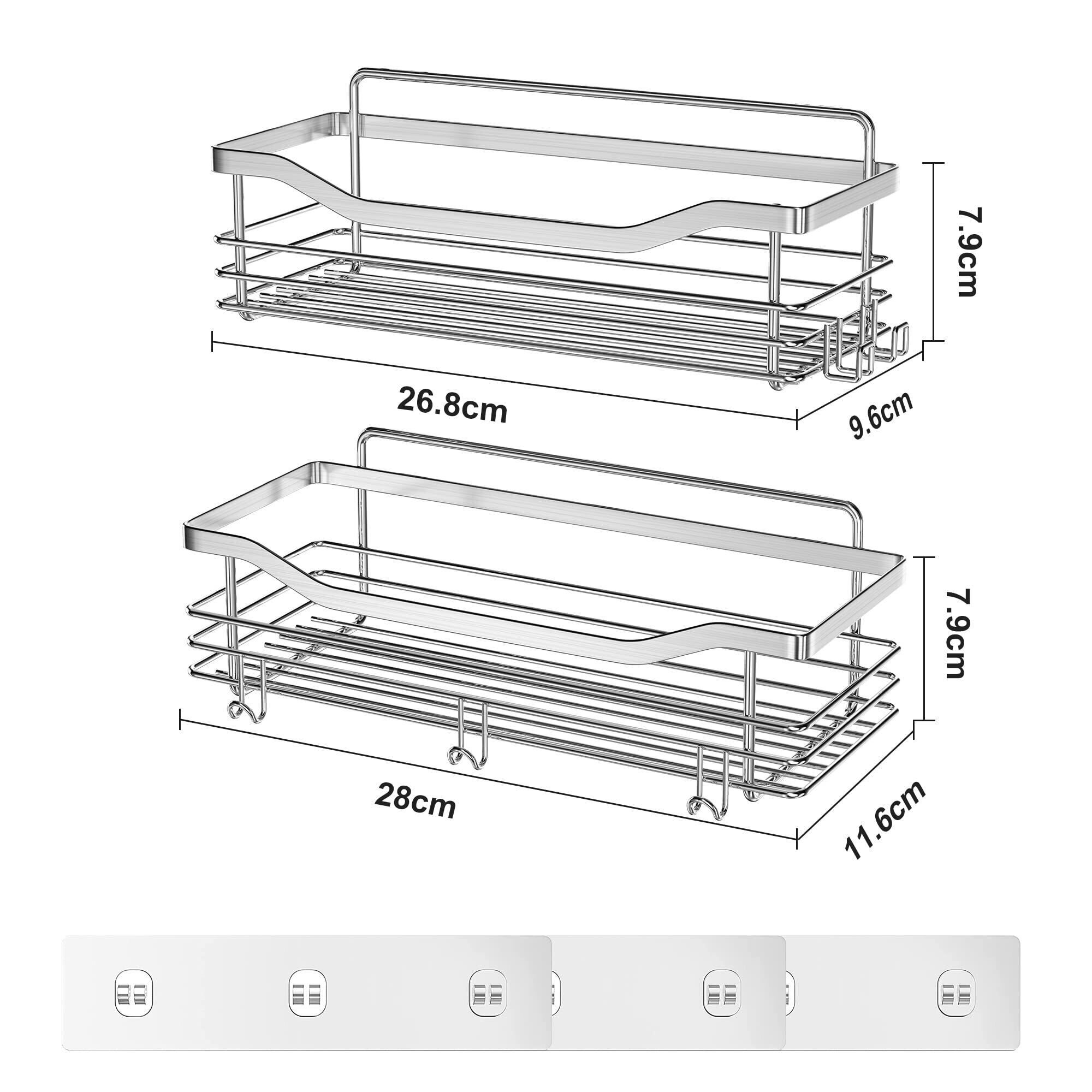 Orimade 浴室用ラック フック5個付き ステンレス 強力粘着固定 シャワーラック シャンプーラック キッチン/風呂場/洗面所 収納ラック 壁掛け棚 2段式 シルバー