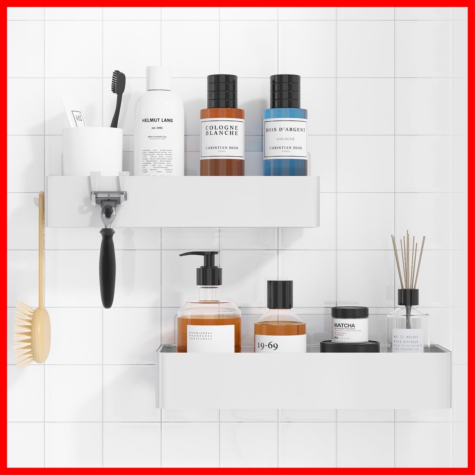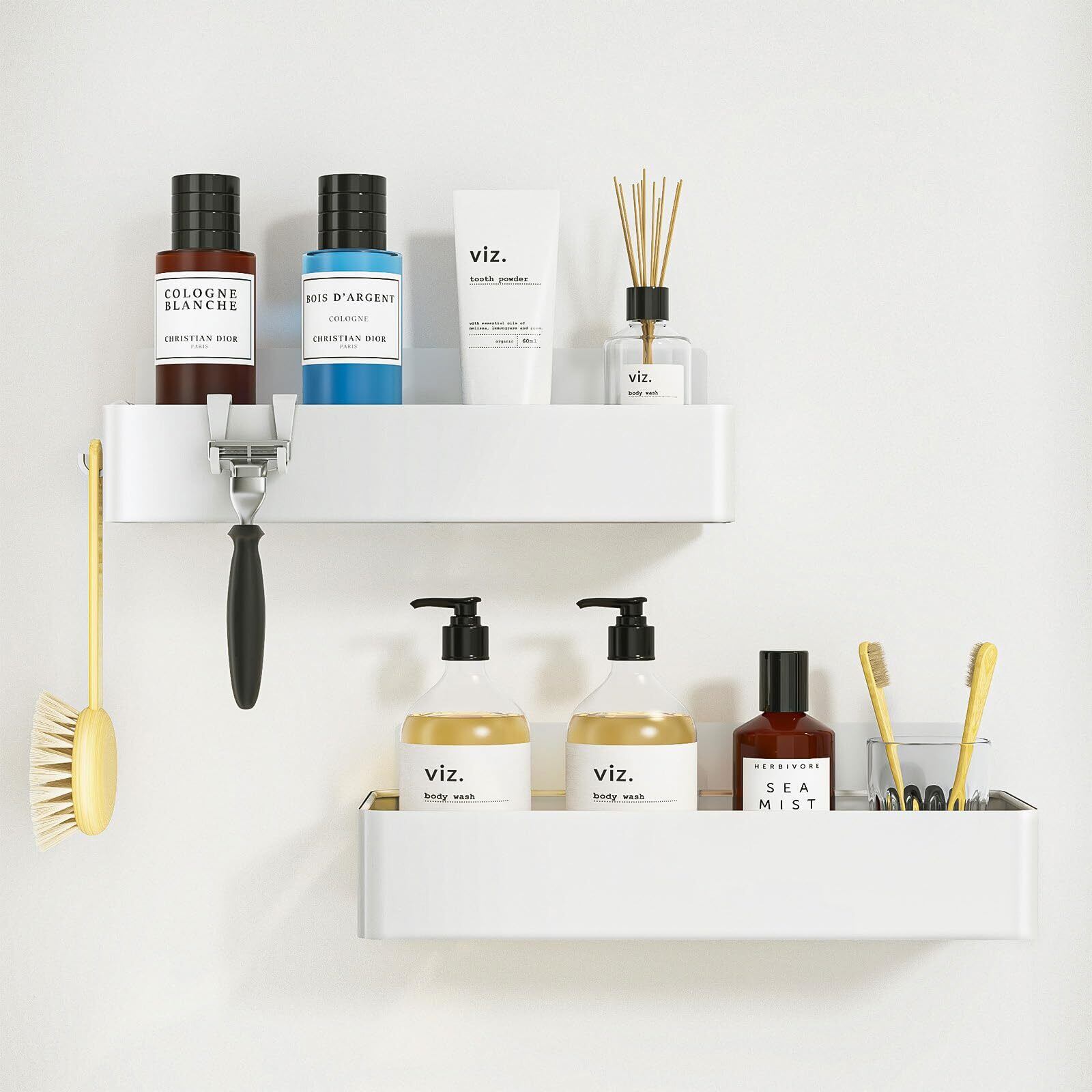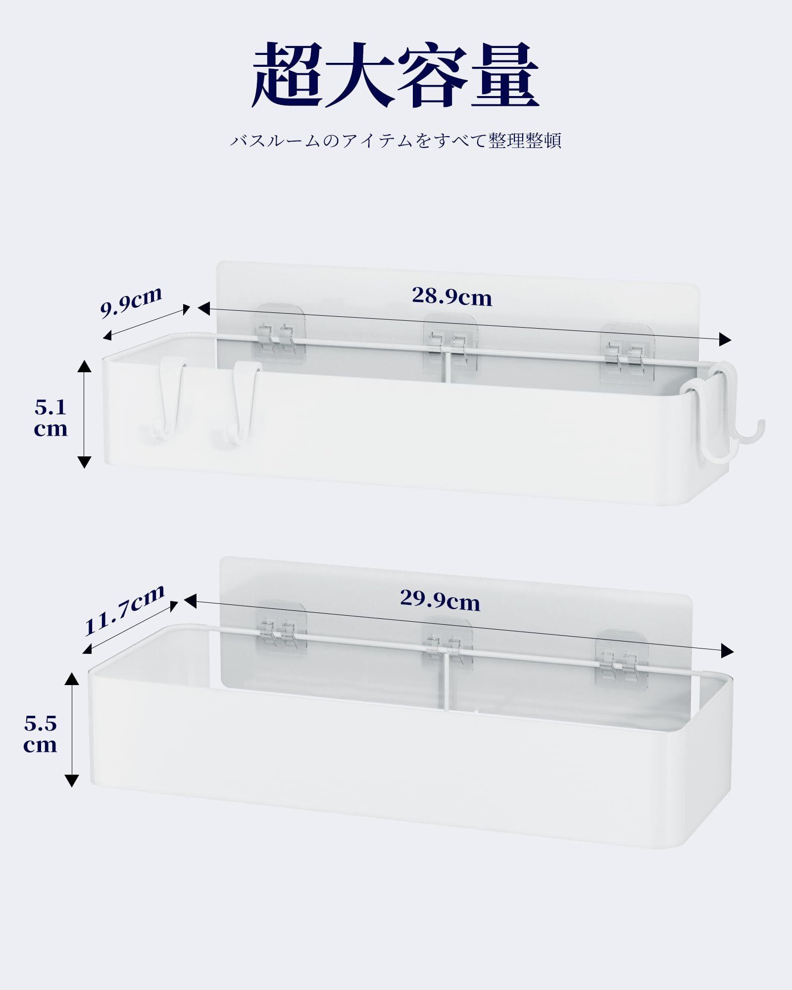 Kitsure 浴室ラック 2個セット バスルーム シャワーラック 水切り お風呂 収納 フック付き 約W29.9XD11.7XH5.5cm ホワイト