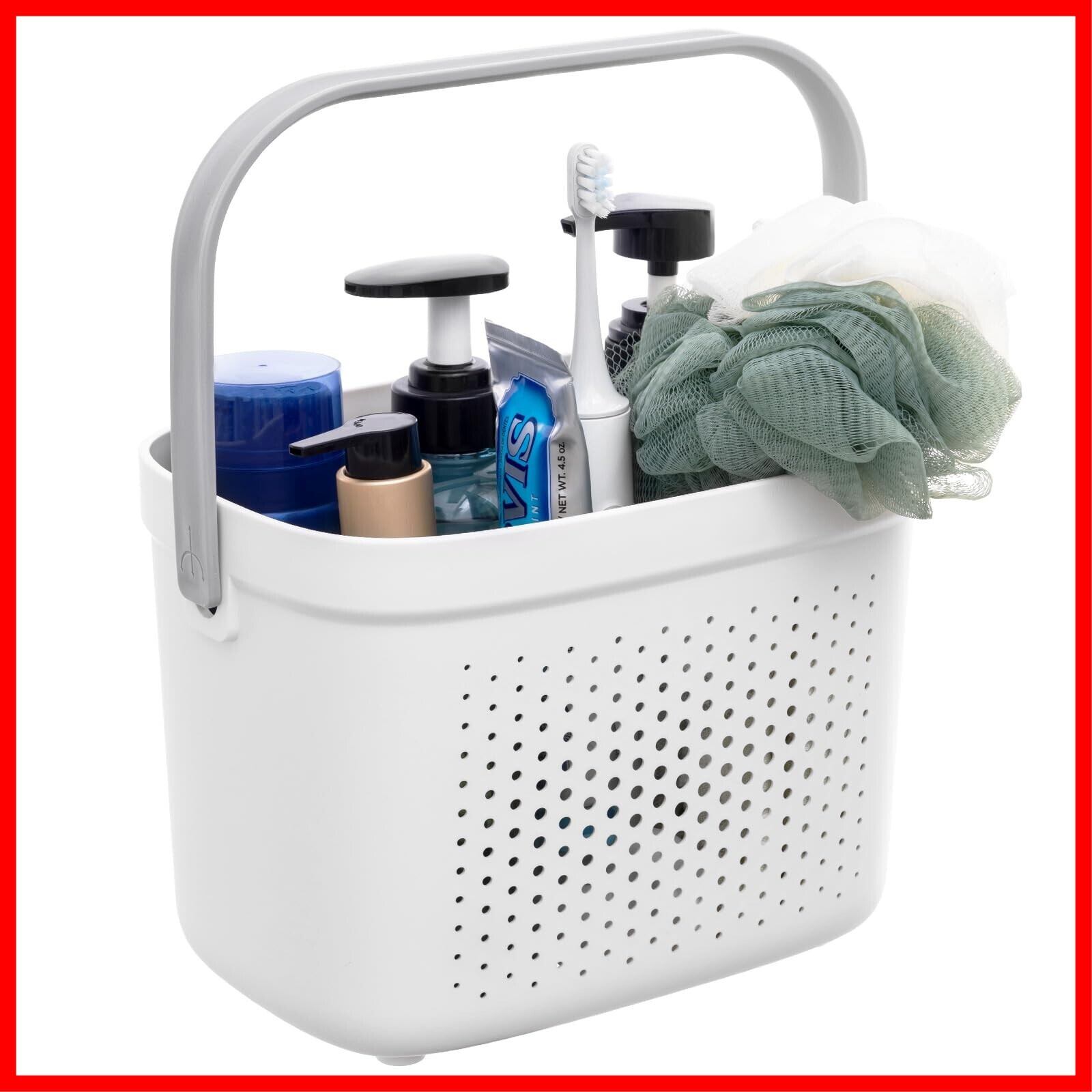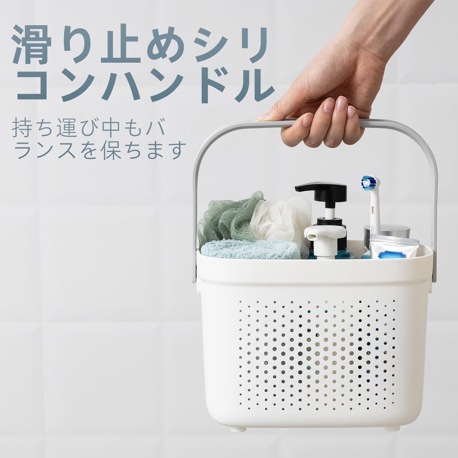 TAILI 浴室用ラック シェルフバスケット 手提げ 洗面具 風呂 かご 収納かご 取っ手 バス用品 水切り 温泉 銭湯 スパ バスルーム 化粧品入れ 小物収納 通気性 大容量 多機能 海水浴 花火大会 持ち運び ホワイト 1個組