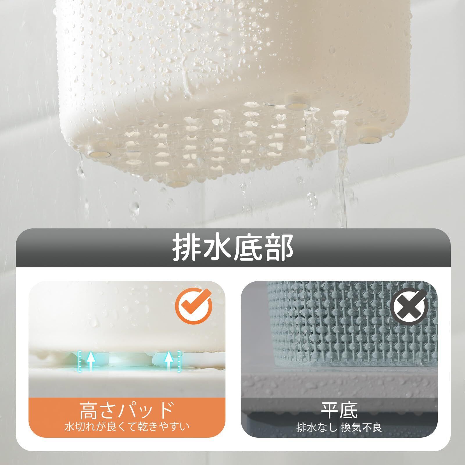 大容量:収納バスケット サイズ:約幅23×奥行16×高さ16.5cm。歯ブラシ、化粧品、洗面用具、クリーム、お風呂用具などをまとめてすっぽり収納できます。おしゃれデザイン、大容量、スペースを節約しま。このポータブルシャワーバスケットの使用により、洗浄用品を整理し、浴室を整頓した状態に保つことができます