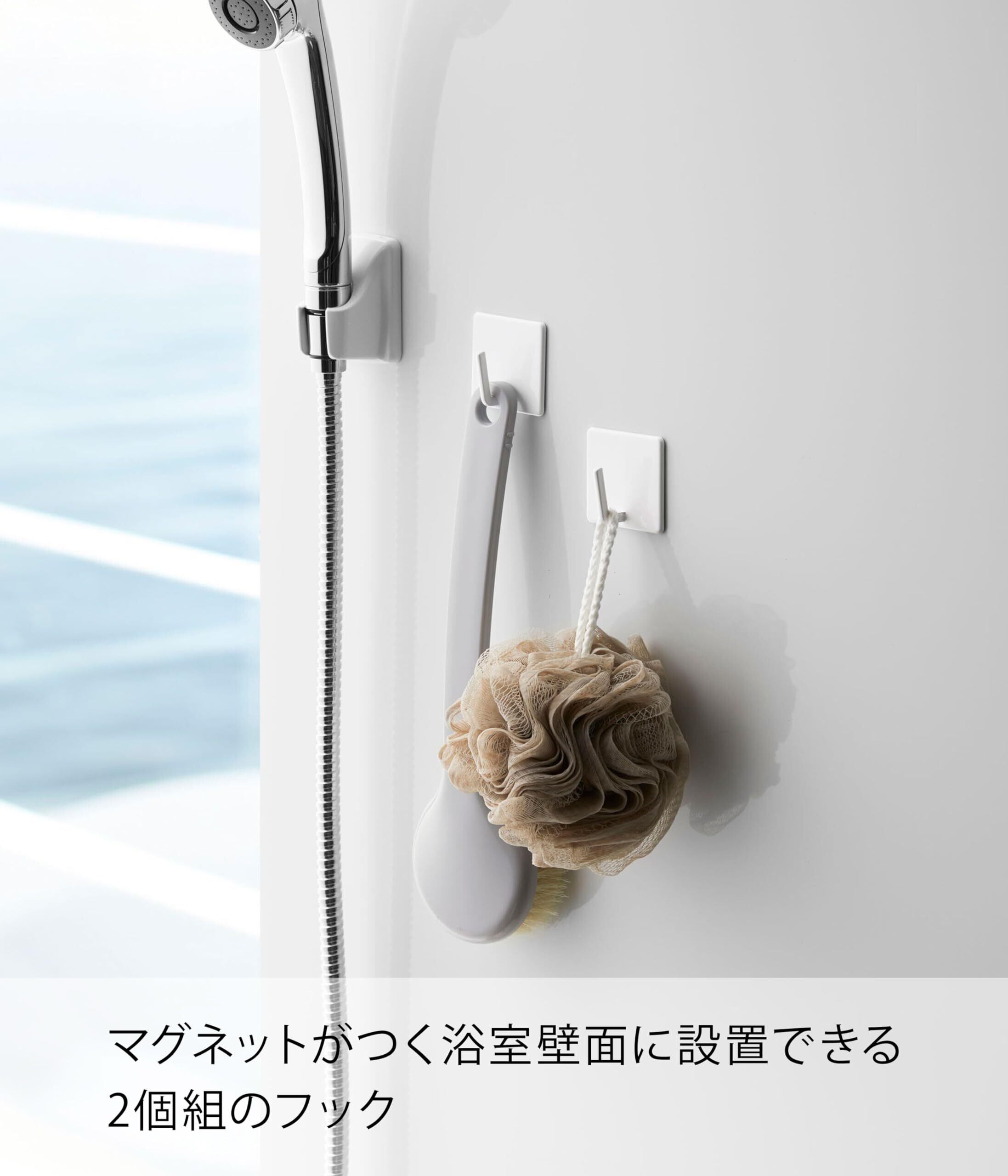 山崎実業(Yamazaki) マグネット バスルーム フック 2個組 ホワイト 約W5XD3.5XH5cm ミスト 浴室収納 フック 省スペース4235
