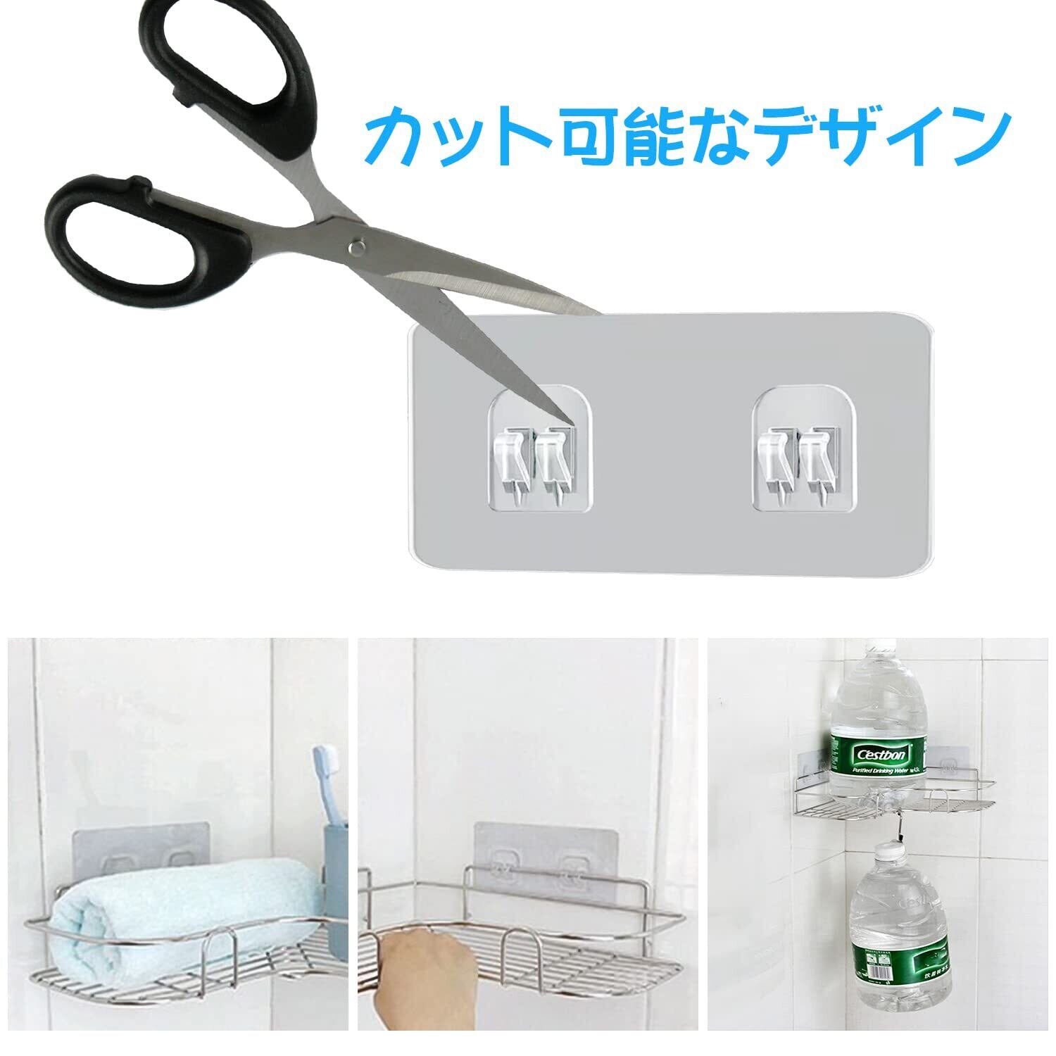 【バスルームラックテープ】4枚の浴室ラックテープは、壁やドアの表面を傷つけることなく、透明で透明な独特のダブルボタン設計を採用しています。バスルームやキッチン、寝室の棚を支えて省スペースにしたり、裁断して使い分けることもできます。2つのフックが連動し、キッチン、バスルーム、寝室、オフィスなどに適したアイテムをすばやくぶら下げることができます。また、家を飾ったり、物を整理したりするのにも役立ちます。