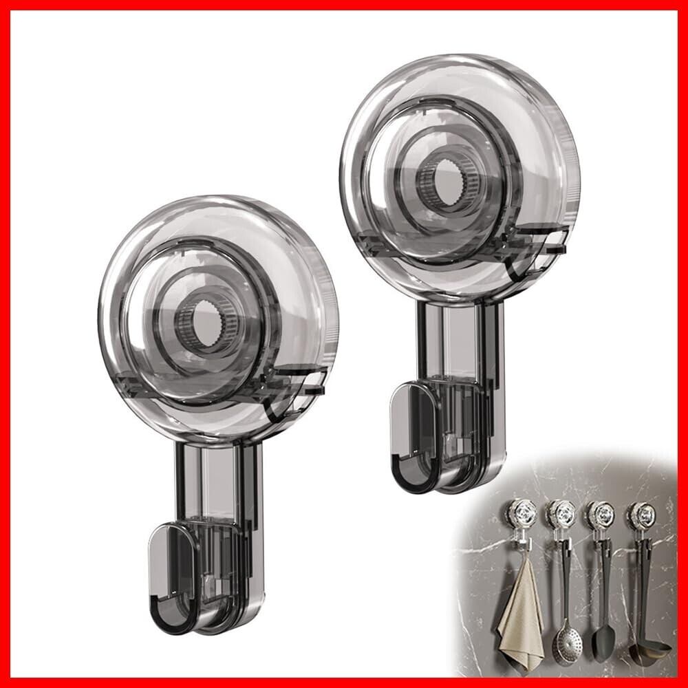 UrbanPulse 吸盤 フック 強力 壁掛けフック 繰り返し使用可能 傷つけない 透明 真空 ネジ不要 高い耐荷重 玄関 キッチン バスルーム 浴室 壁掛け収納 防水 2個入り (グレー)