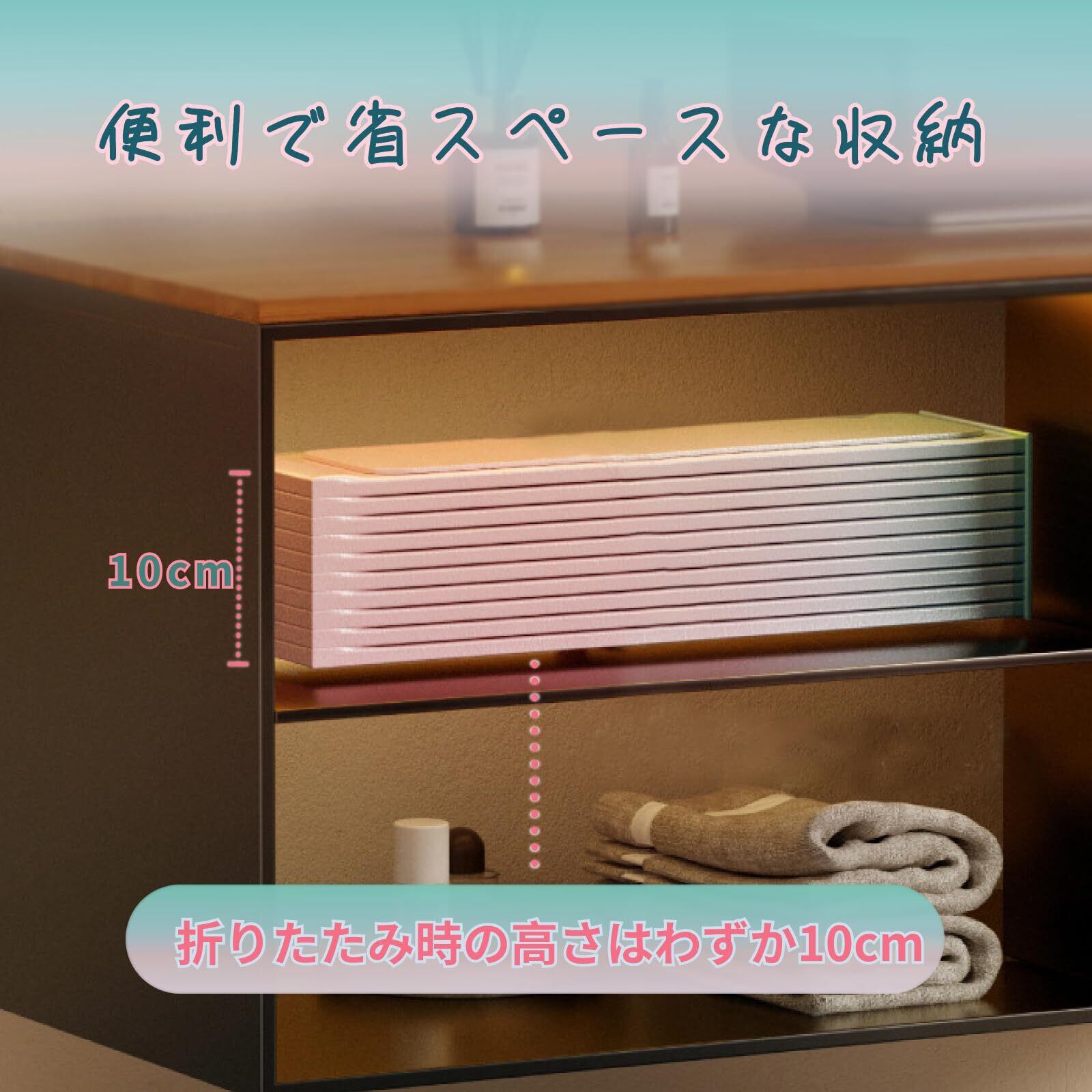折りたたみ収納可能:簡単に折りたためて、収納スペースを節約できます。折りたたんだ後の高さはわずか10cmで、持ち運びも容易。屋内でも屋外でも便利に使用できます。