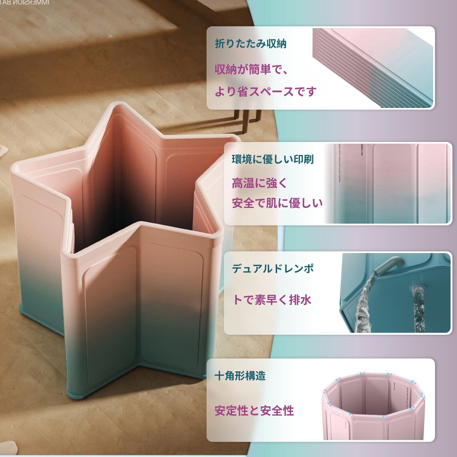 多様な使用シーン:室内でリラックスしたり、キャンプや旅行でも利用可能。夏にはアイスバスとして新陳代謝を促進し、冬には体を温めます。30個の使い捨て浴槽カバーが付属しており、清潔に使用できます。
