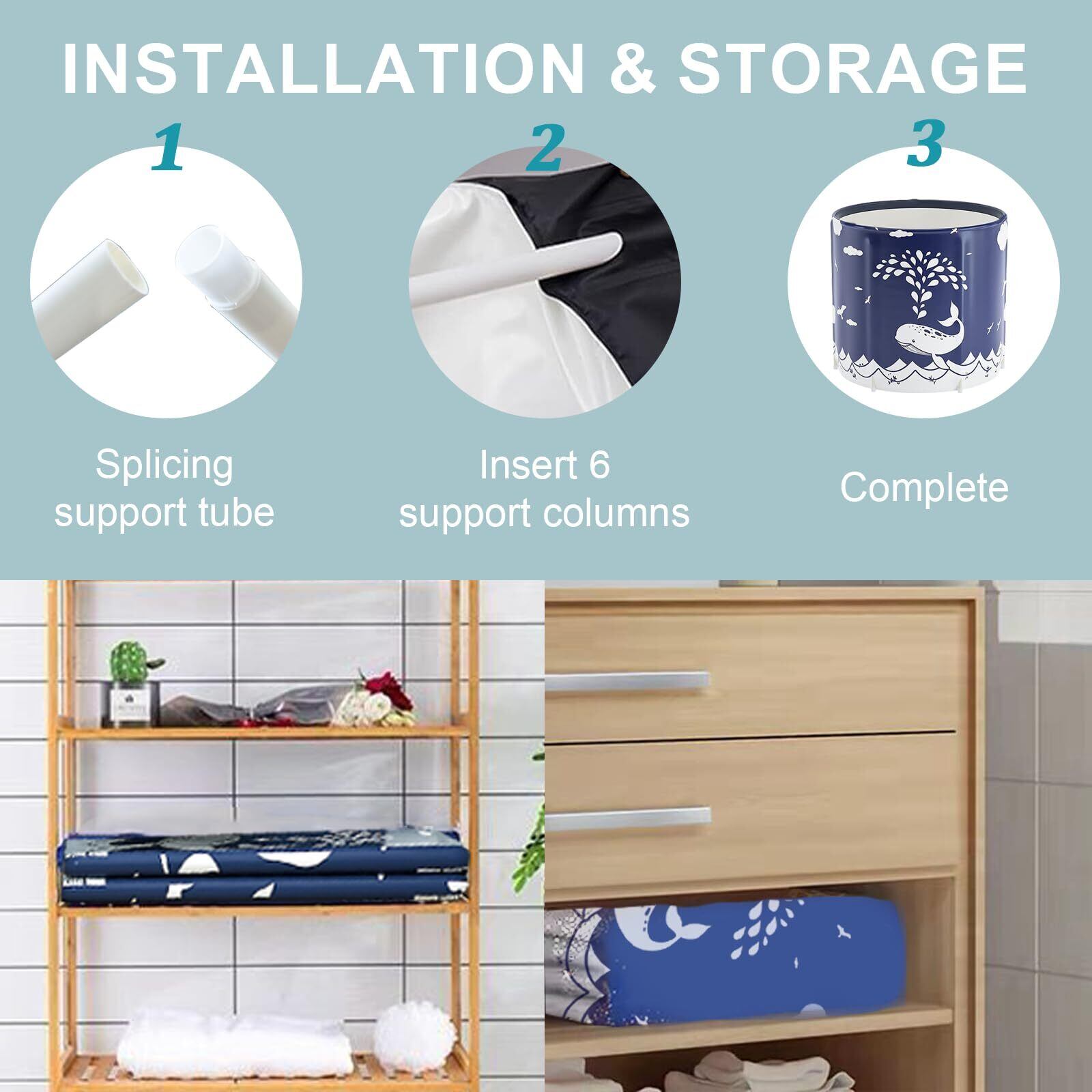 【優れた品質】シャワートイレでも使えるコンパクト設計,浴槽がないお家でも、お湯に浸かる至福のバスタイムが可能。屋内および屋外、小さなスペースに適しています。小さな村のアパートやシングルルームに住んでいても、自宅において楽に使用、収納できる最適なバスプールです。