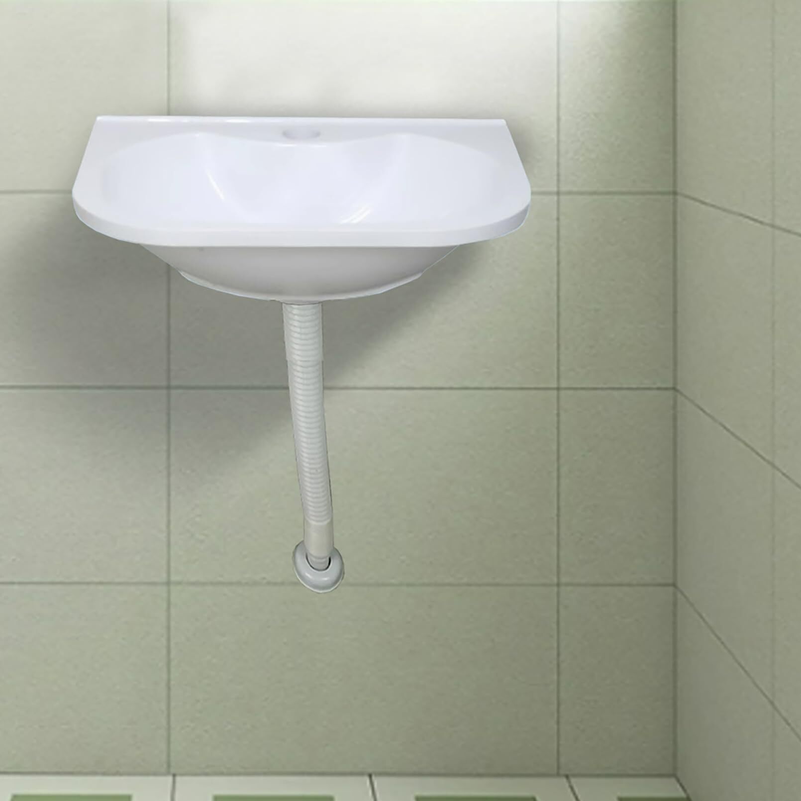 XRB2050 洗面ボウル セット 38x28x12 cm ホワイト 壁掛け 洗面ボール プラスチック材質 ガーデキッチ 洗面ボウル 洗面器 ウォールマウント 屋外屋内 家庭用 バルコニー 庭 浴室 台所 工場 A 80cm ドレンパイプ