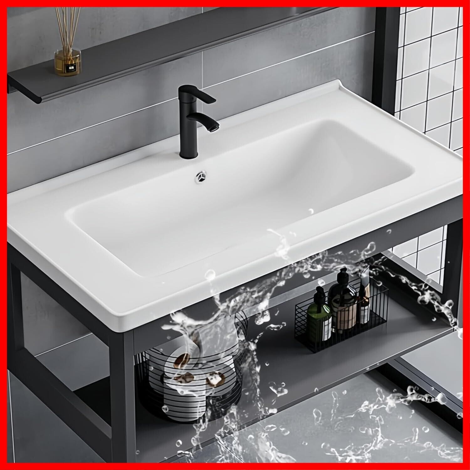 【洗面化粧台材質】vvicoo 洗面台 一式高品質のセラミック製。 ワンピースを形成するために高温で焼成され、バスルームや化粧台の装飾に美しさと優雅さを加えるように設計されています。