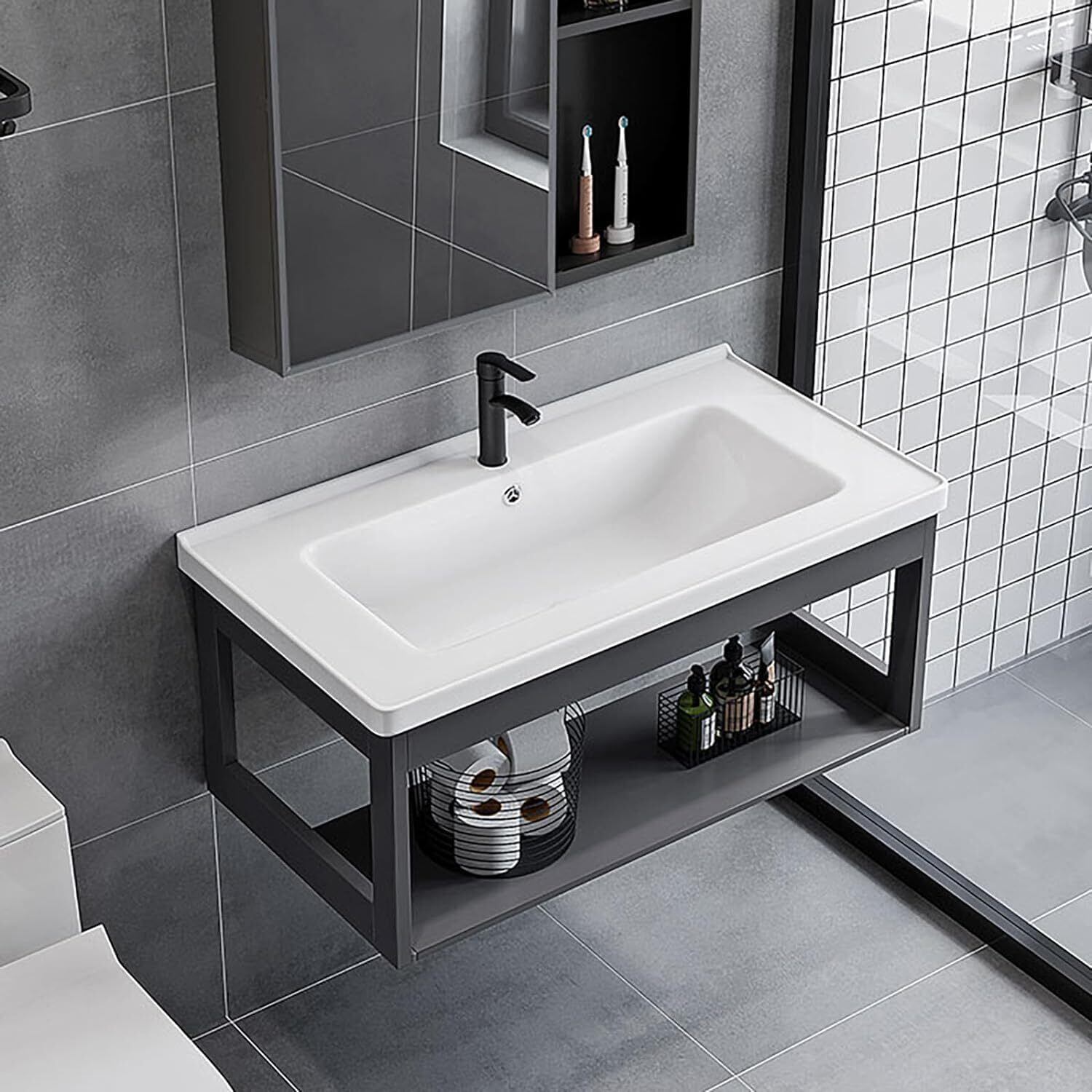 vvicoo 洗面台 洗面化粧台 手洗い器 壁掛け 手洗いボウル 壁付け型 方形 洗面鉢 洗面台 陶器製 アクセサリーセット 省スペース インストールが簡単 耐久性 排水口 & 温水・冷水栓付 浴室洗面台用 屋外屋内 流し台 (50×30cm)