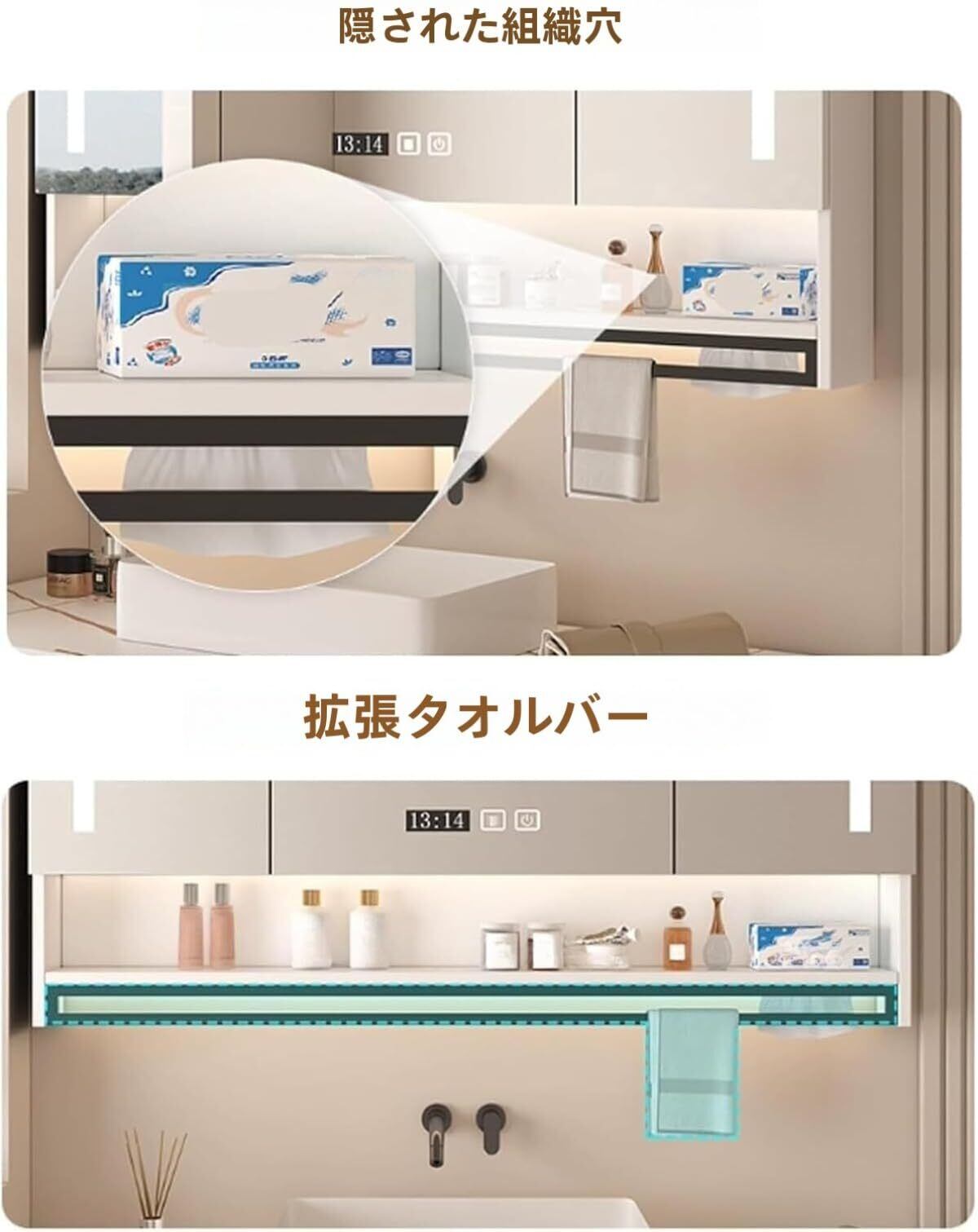 ディテールデザイン:この洗面ミラーキャビネットには、隠しペーパータオルホールがあり、引き出し口を大きくして、洗った後すぐに拭くことができます。ミラーキャビネット 東プレの下には、延長タオルバーがあり、日常のアイテムを手軽に取り出すことができます。