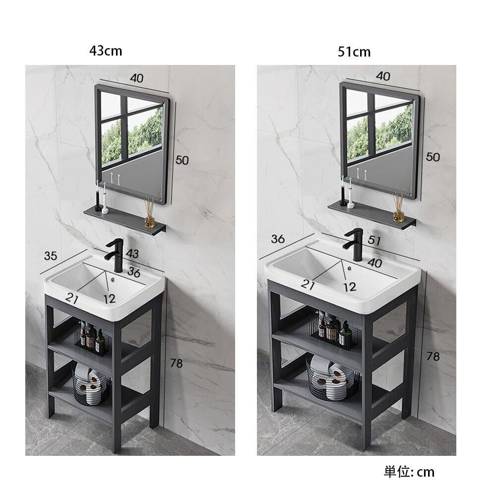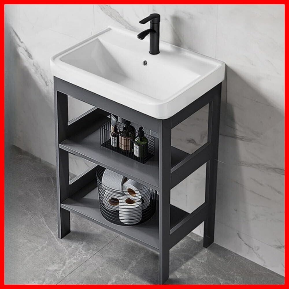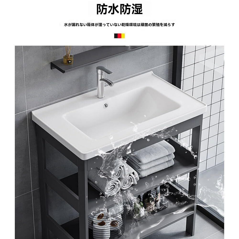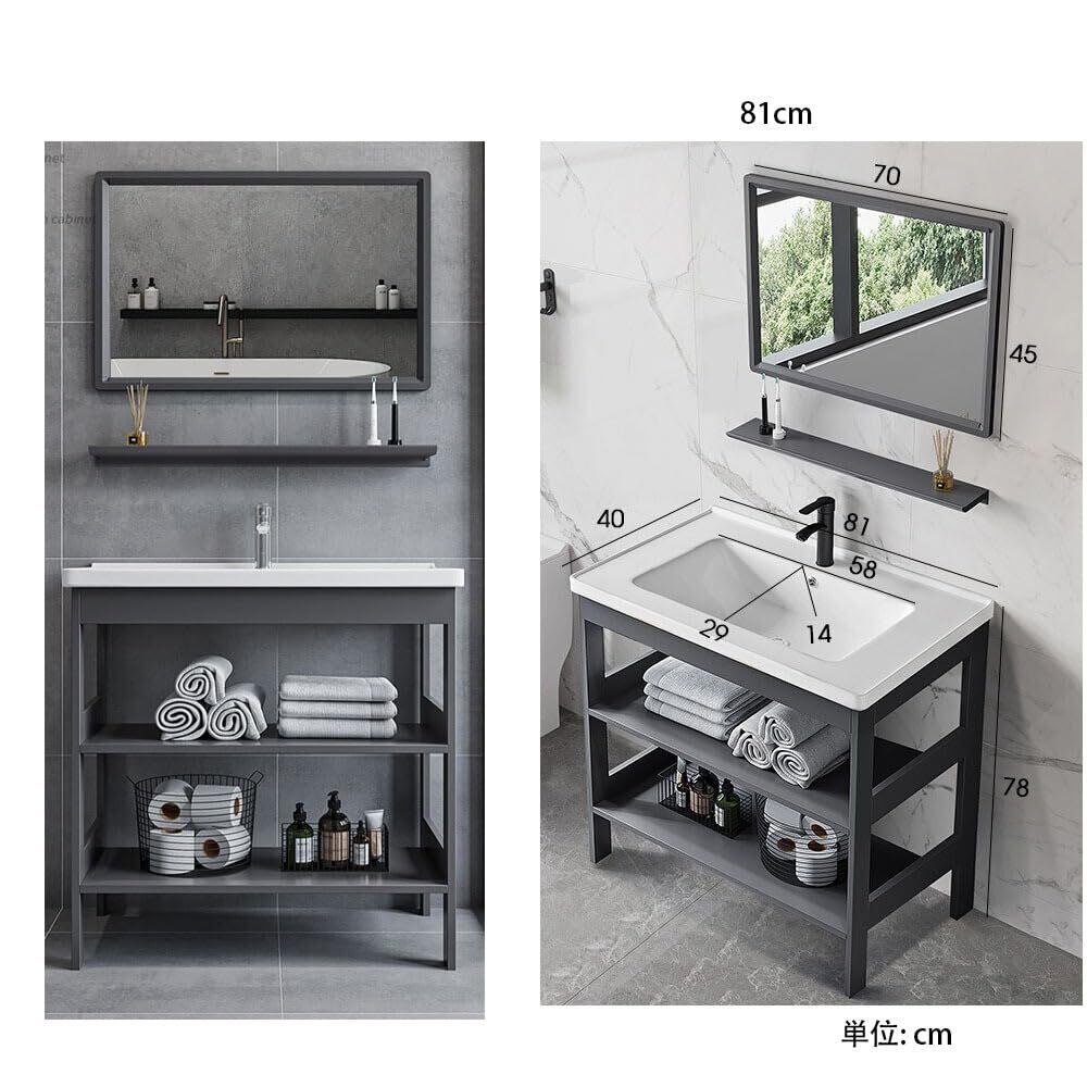 Nihig 洗面台セット 洗面ボウル 洗面化粧台 ガーデン シンク キッチン シンク セラミック シンプル バスルーム シンク付き洗面化粧台、収納 、セラミック製洗面台付きのスペース アルミニウム製バスルーム化粧台コンボ ステンレス鋼の蛇口 (61cm,洗面台フルセット)