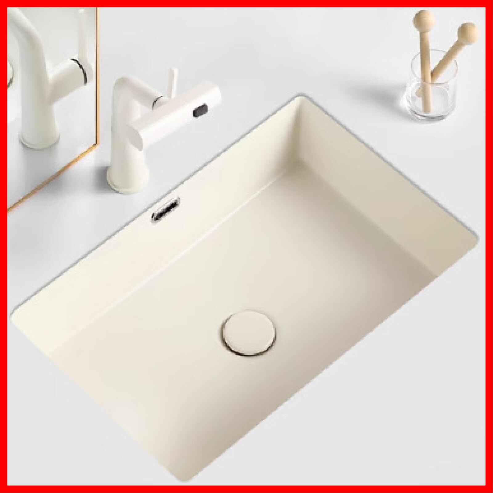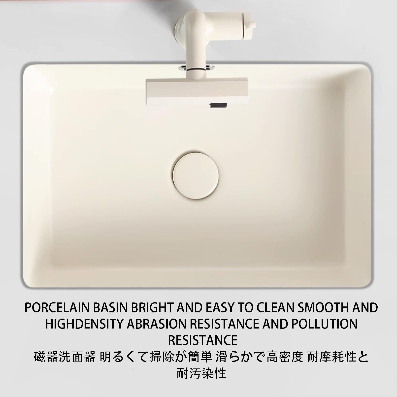 【人気商品】洗面台浴室洗面ボウル長方形陶器埋め込み式取り付け簡単小型手洗い器排水金具付掃除が簡単洗面台ホーム水はね防止アパート家庭用バルコニー用(60x40x18cm) | Cherry Blossoms