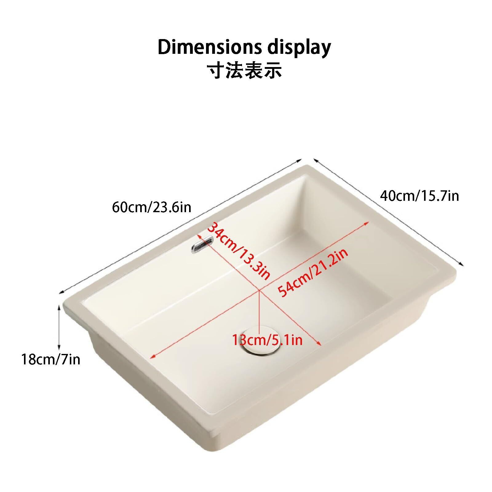 洗面台浴室洗面ボウル長方形陶器埋め込み式取り付け簡単小型手洗い器排水金具付掃除が簡単洗面台ホーム水はね防止アパート家庭用バルコニー用(60x40x18cm)