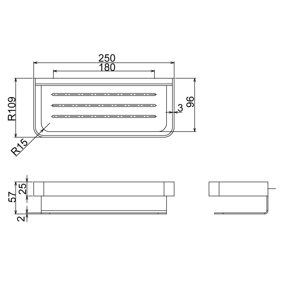 サイズ:W250 x H57 x D109mm
