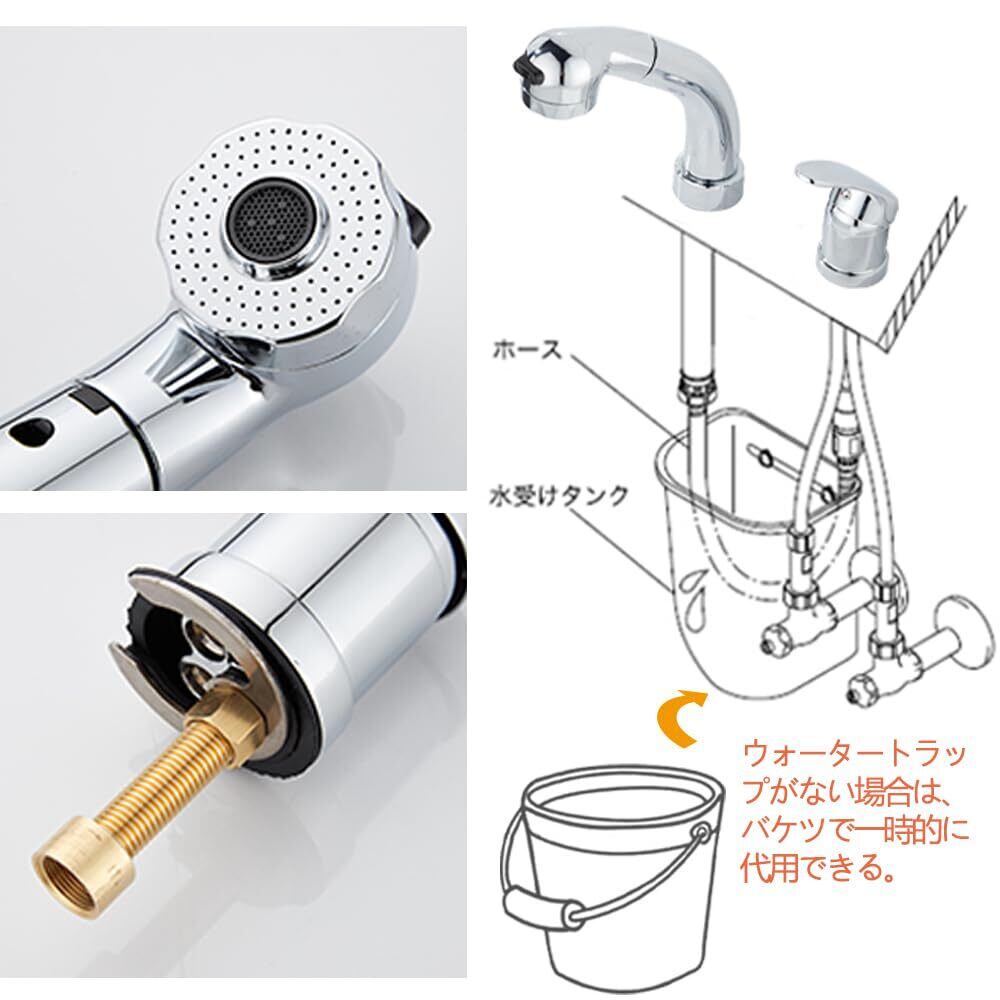 【ホース引き出し式】洗面水栓のホースは最長50cm引き出し可能です,洗髪、洗面台をお掃除、場合はにはとても便利です。
