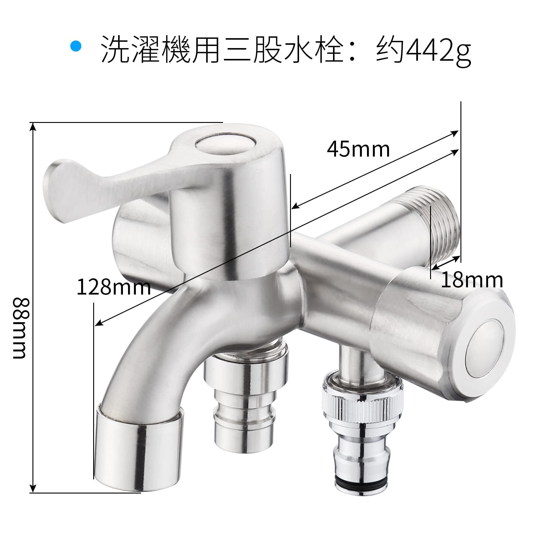 Jeonestan 水道 蛇口 3口 洗濯機・ガーデニング・散水ホース同時接続対応 ステンレス製 防錆 耐久型 分岐 水栓 G1/2接続 壁付け 取付穴径20mm 洗濯室/庭/ベランダ/ガーデン/水栓柱/屋外用 (C:3分岐蛇口)
