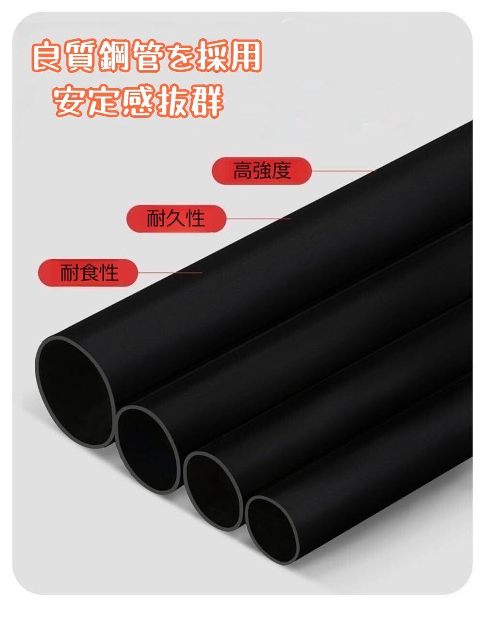【優れた耐久性・安定感抜群】太さ25mmのしっかりとしたスチールパイプを採用しており、安定感抜群です。耐食性に強く、長期間使用可能です。