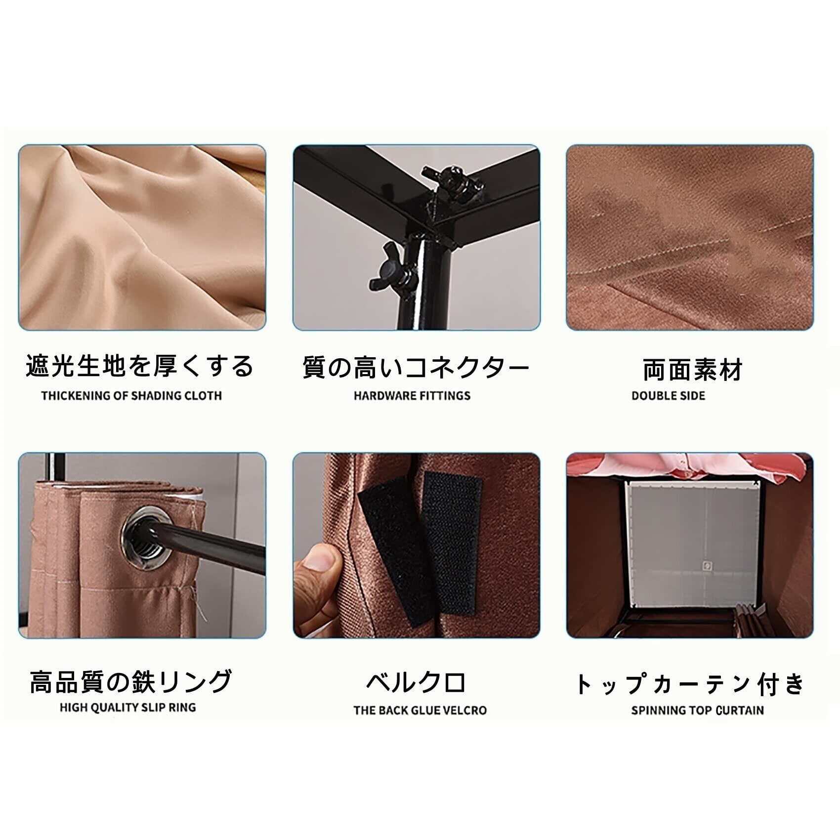 フィッティングルーム :厚めのカーテンですので、プライバシーも守られ安心してご使用いただけます!良質鋼管を採用、厚いフレーム、高い耐荷重、全体的な安定性、揺れなし。安定性が抜群!厚手のコットンとリネンの生地ポリエステル 100% 生地、肌触りが良く、耐摩耗性と耐久性、天然厚みのある遮光生地がプライバシーと個人用スペースを提供。