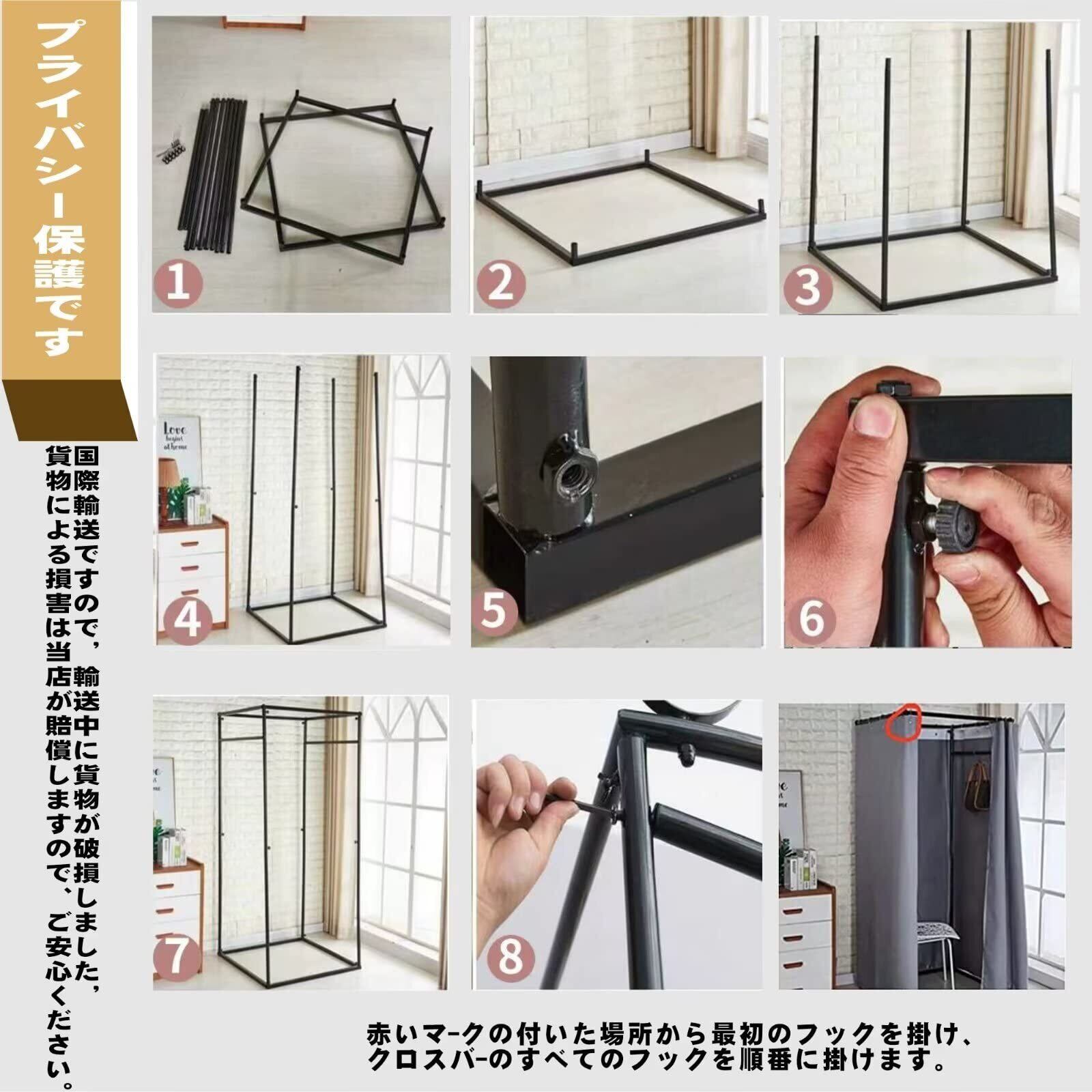 【高品質材料】フレーム(鉄),良質鋼管を採用、耐荷重がいいです!更衣室のカーテンは、105%以上の光を遮ることができる厚手の高密度生地な材料に使用しており、プライバシーを最大限に高めることができます。冷水で洗濯機で洗え、タンブル乾燥します。折りたたまれているため、カーテンにしわが寄る場合がありますので、アイロンをかけてご使用ください