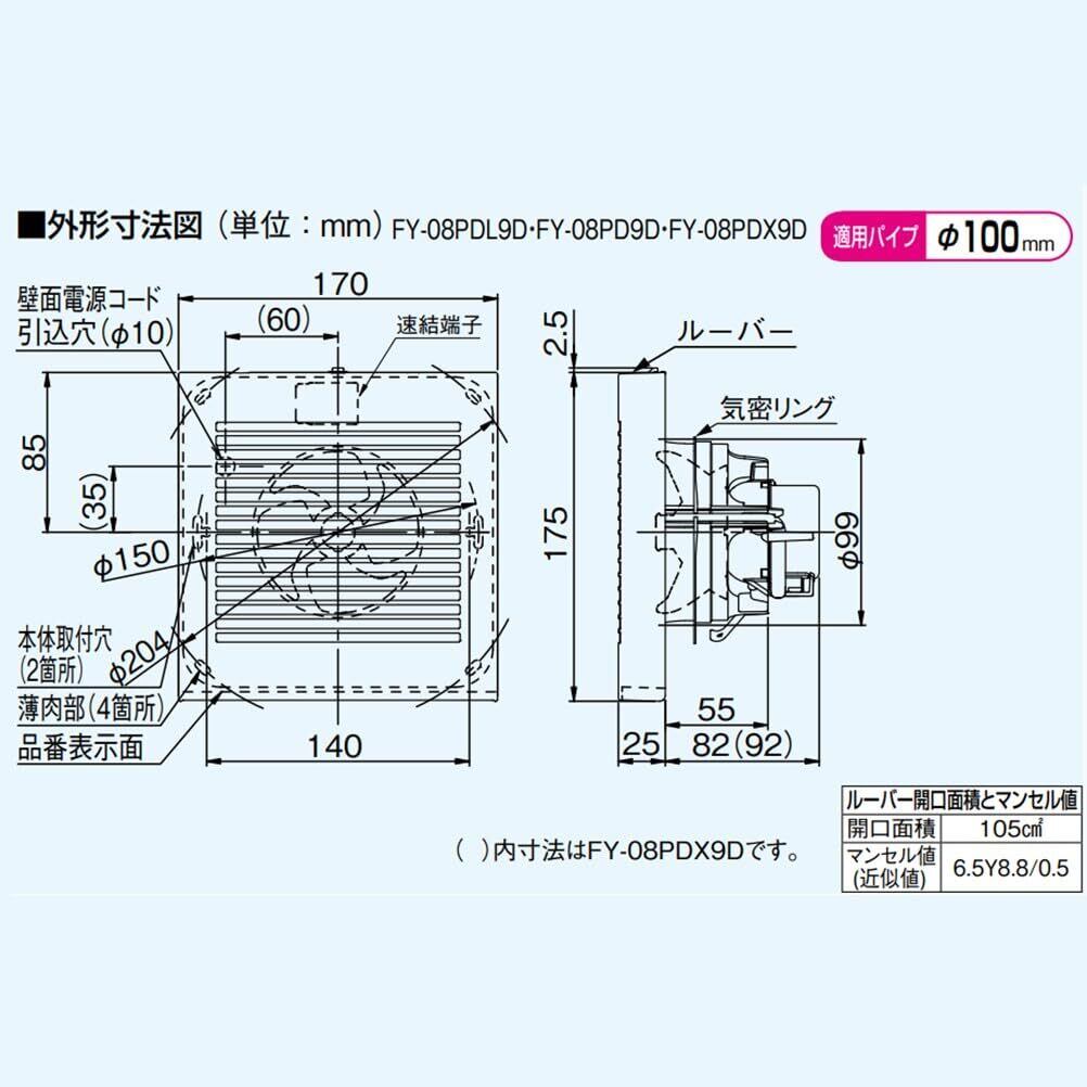 パナソニック(Panasonic) パイプファン 排気形 (速結端子) FY-08PD9D