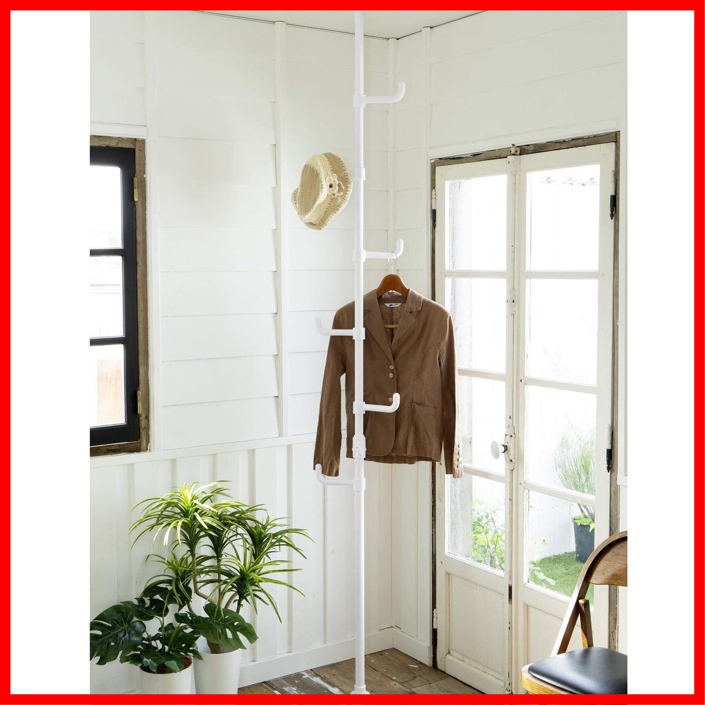 【特価セール】山善(YAMAZEN) 突っ張り ラック ポールハンガー 全体耐荷重30kg ワンタッチ突っ張り (実用新案取得済) 高さ190-260cm コートハンガー 玄関収納 一人暮らし 子供部屋 組立品 マットホワイト WJ-725RM(MWH) シングル | Cherry Blossoms