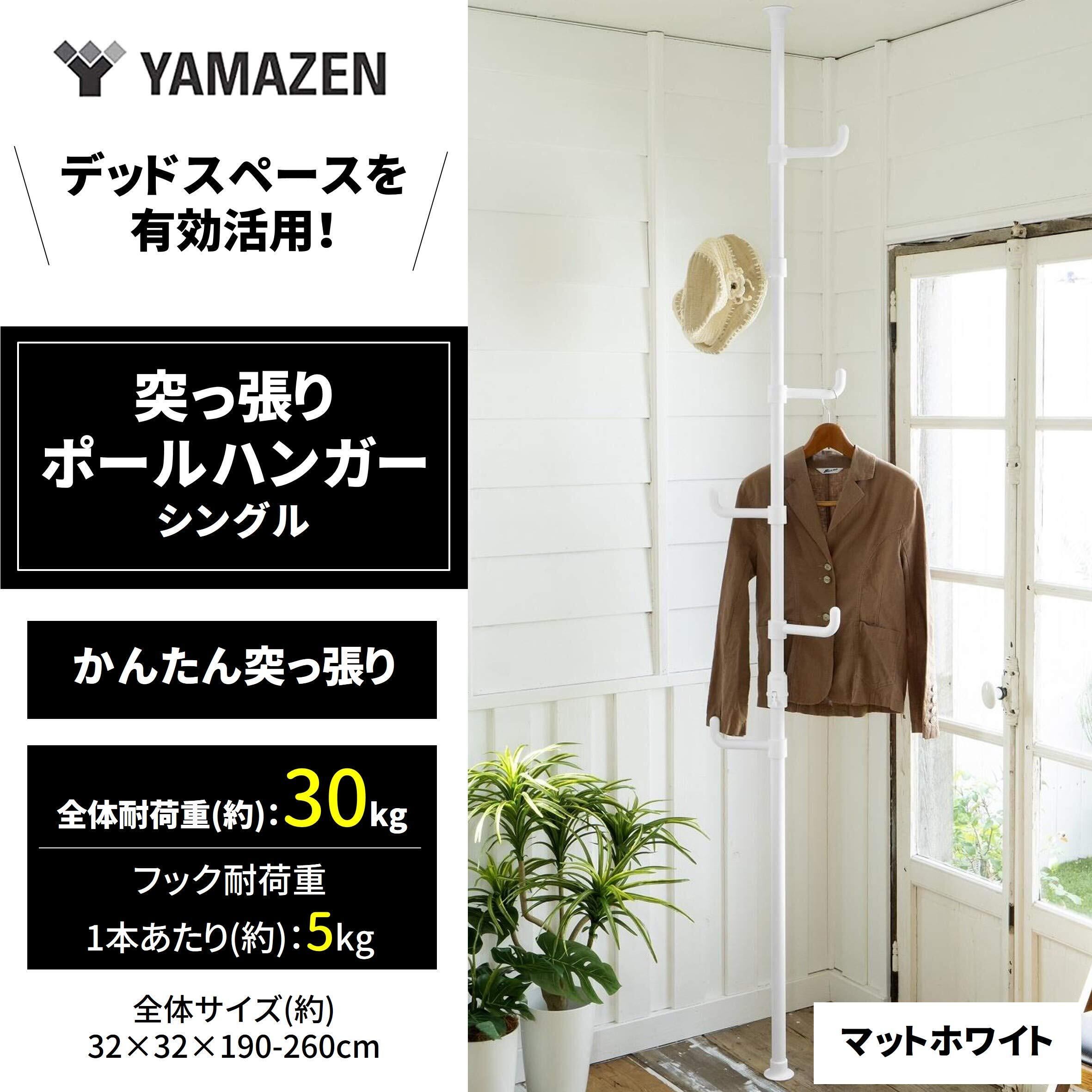 山善(YAMAZEN) 突っ張り ラック ポールハンガー 全体耐荷重30kg ワンタッチ突っ張り (実用新案取得済) 高さ190-260cm コートハンガー 玄関収納 一人暮らし 子供部屋 組立品 マットホワイト WJ-725RM(MWH) シングル