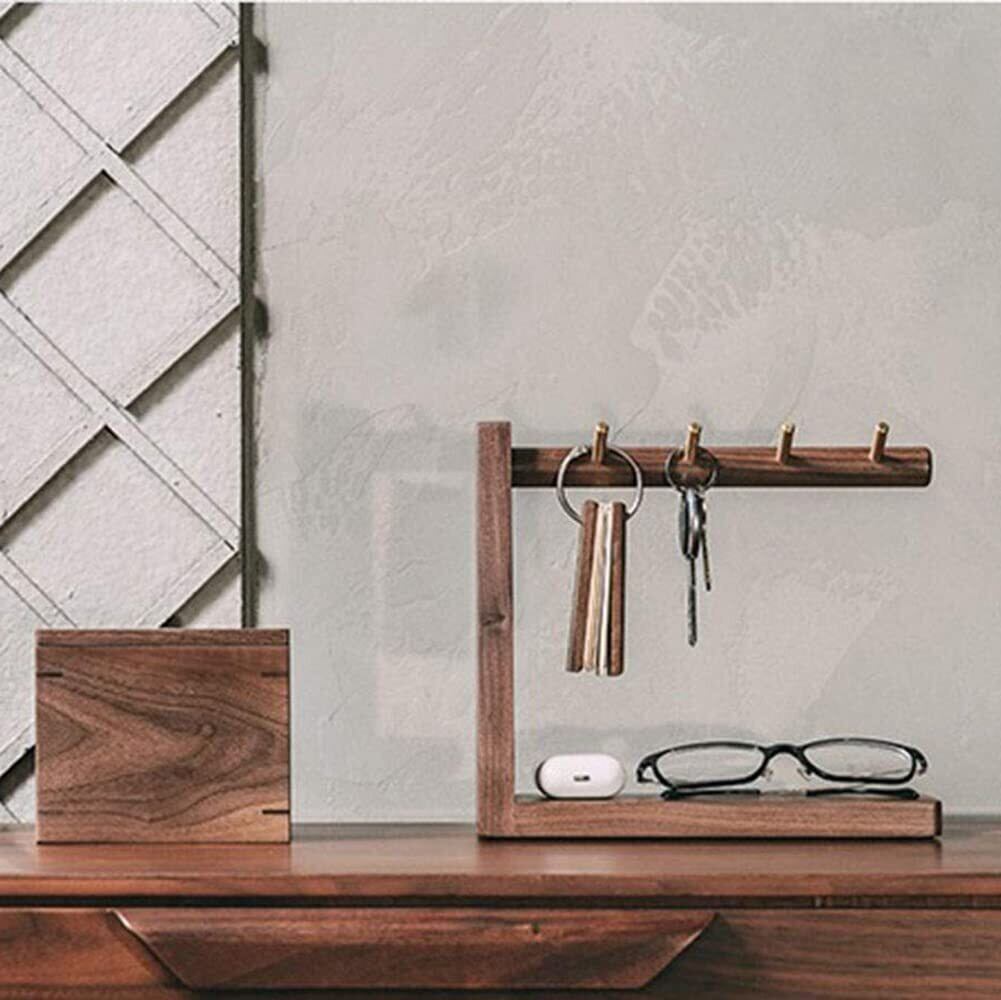 Sakulaya 鍵置き 玄関 アクセサリースタンド メガネスタンド 眼鏡収納 鍵ホルダー 木製 鍵収納 小物入れ キーフック 玄関収納 (クルミ)