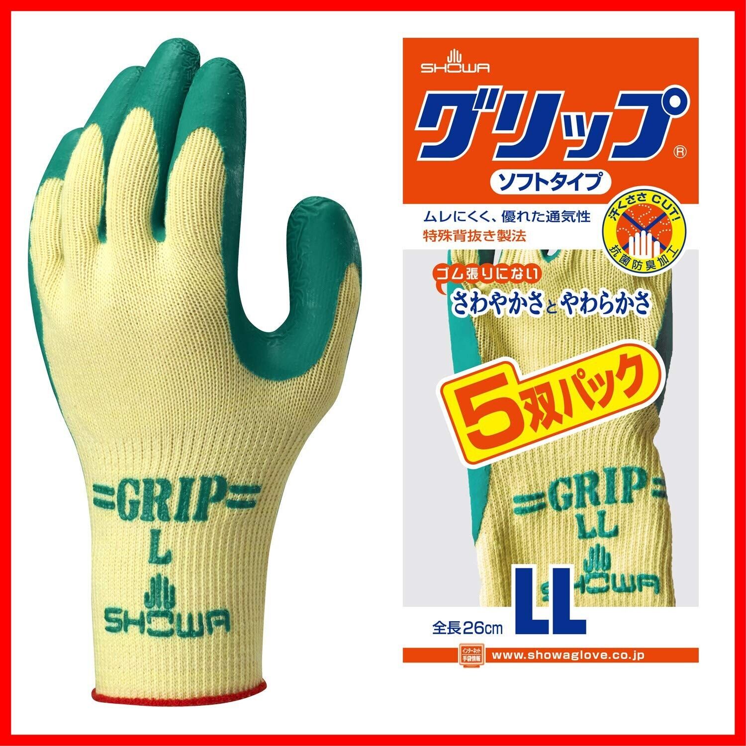 ショーワグローブ 【5双パック】No.310グリップ(ソフトタイプ) グリーン LLサイズ 5双