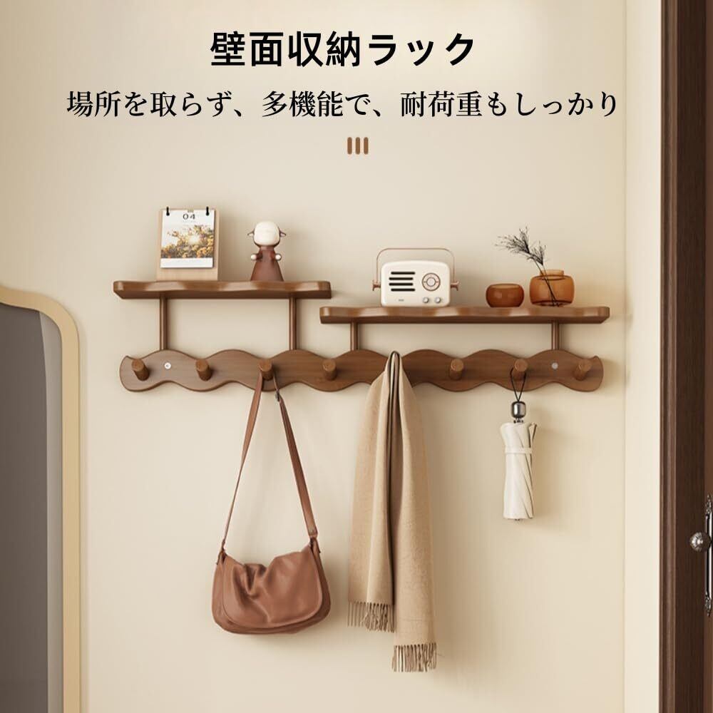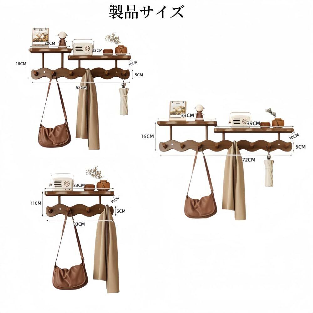 WXQ玄関ドア洋服掛け、 壁掛け、 玄関鍵収納、 クリエイティブ装飾、パンチフリーウォールシェルフ 、木製、壁棚、収納、整理、帽子フック、玄関/バスルーム/キッチン/オフィス、コートハンガーハンガー、ドアハンガー、バスルーム/キッチン/オフィス、 (茶色,8つのフック)
