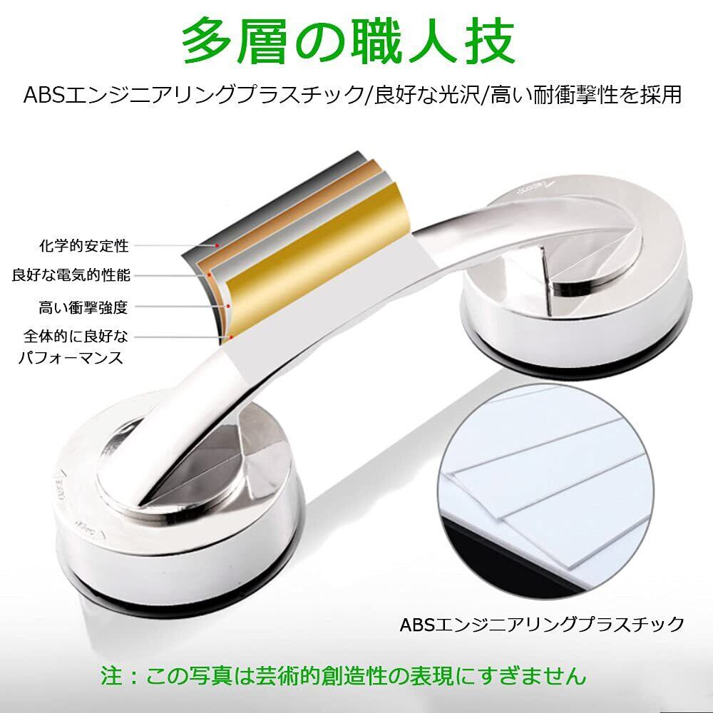 【真空吸盤デザイン】:真空吸盤で、壁にしっかりと吸着でき、繰り返し使用でき、長時間の使用にも耐えます。こちらの浴室用の吸盤タイプ手すりは、こちらは普通の吸盤よりはるかに強力タイプなため、しっかり壁を抓えます。しっかり取り付ければ脱落ことが無し。耐水性を持たせて、濡れている場所でも使えるようになっています。