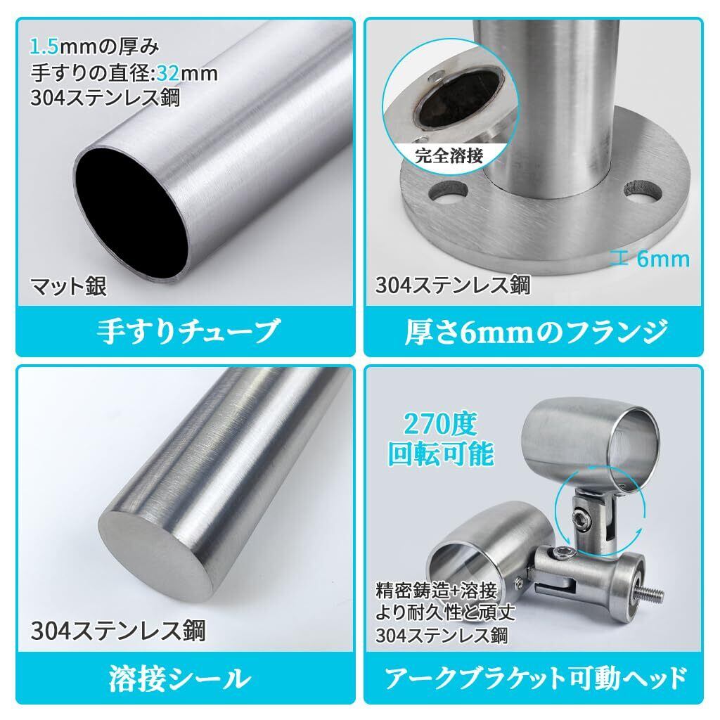 【高品質の手すり】-階段の手すりのすべての部分は、耐候性、防錆性、耐久性があり、清掃が簡単な、つや消しの1.5mm厚304ステンレス鋼(SUS304)で作られています。
