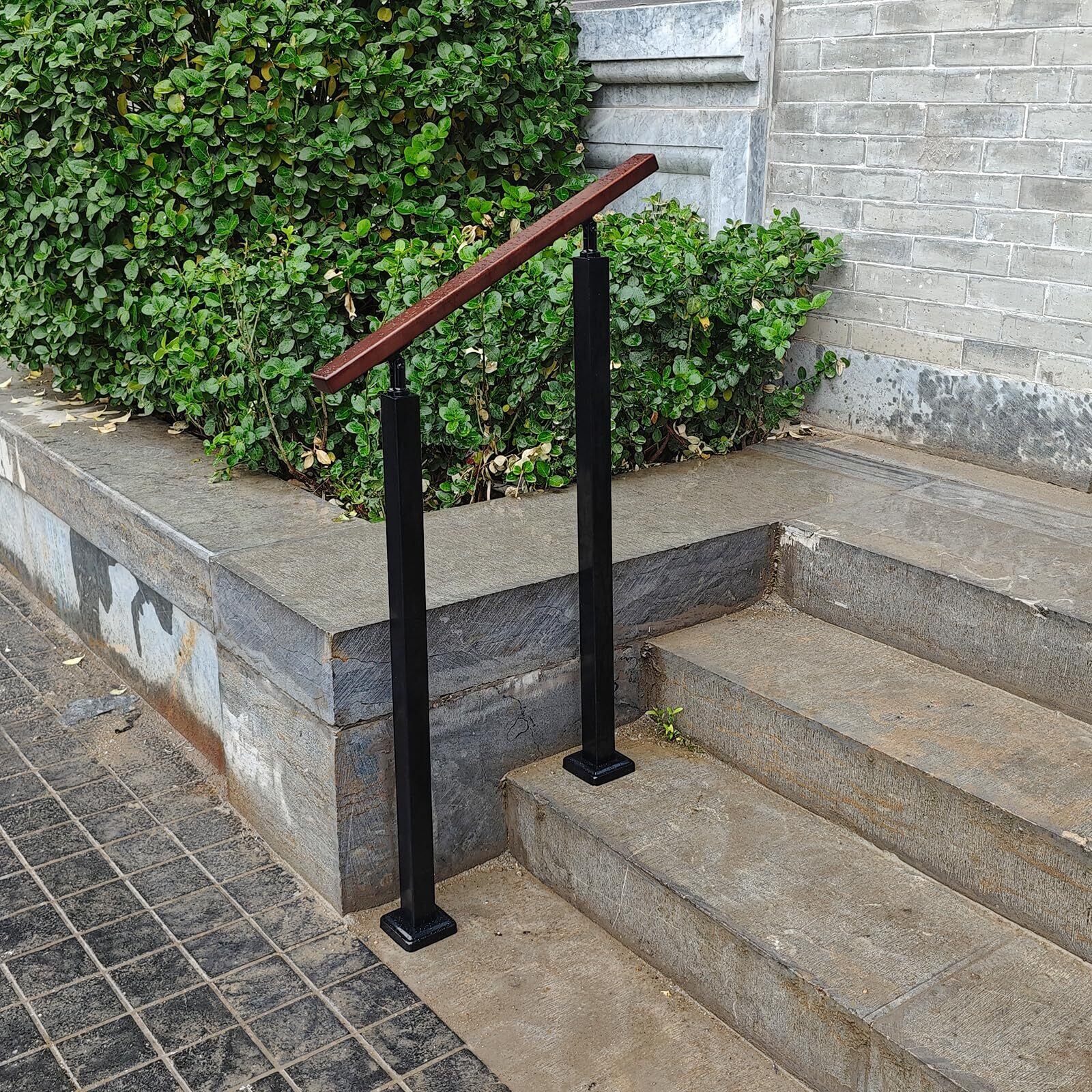 【高品質手すり】手すりは40 * 25 mmのブナ材でできており、硬くて耐久性があり、滑らかに磨かれたエッジと快適なグリップを備えており。手すりの柱は304ステンレスで作られ、38*38 mm、厚さ1.2 mm、光沢のある黒色の表面。家庭や屋外での使用に非常に適しています。